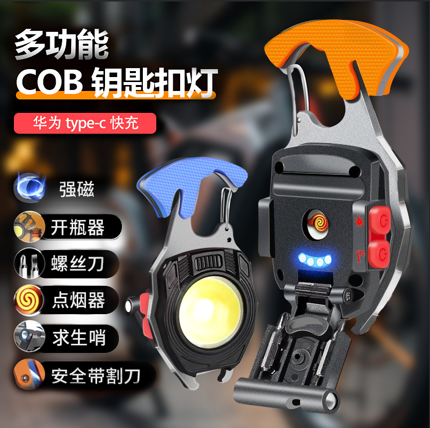 Миниатюрный брелок-фонарь с зарядкой Type-C, для кемпинга на природе, ремонта автомобилей, многофункциональный рабочий фонарь COB