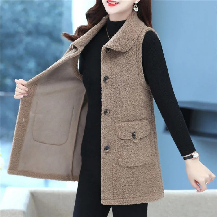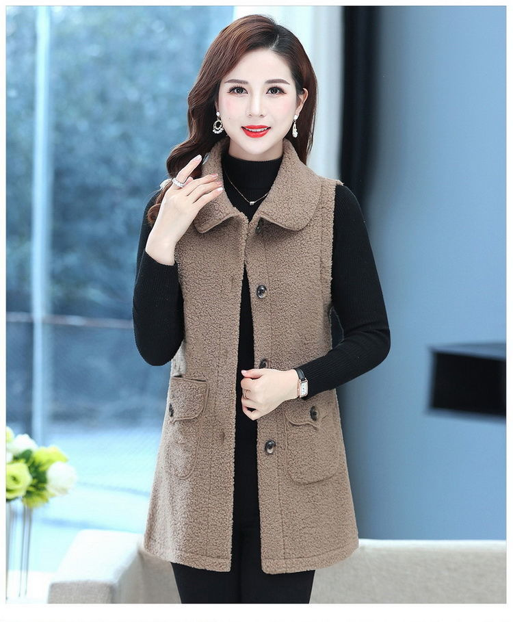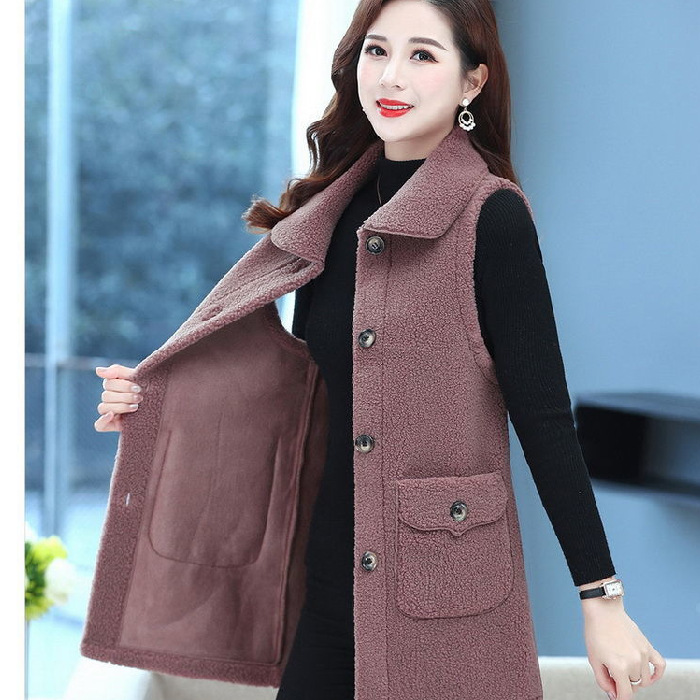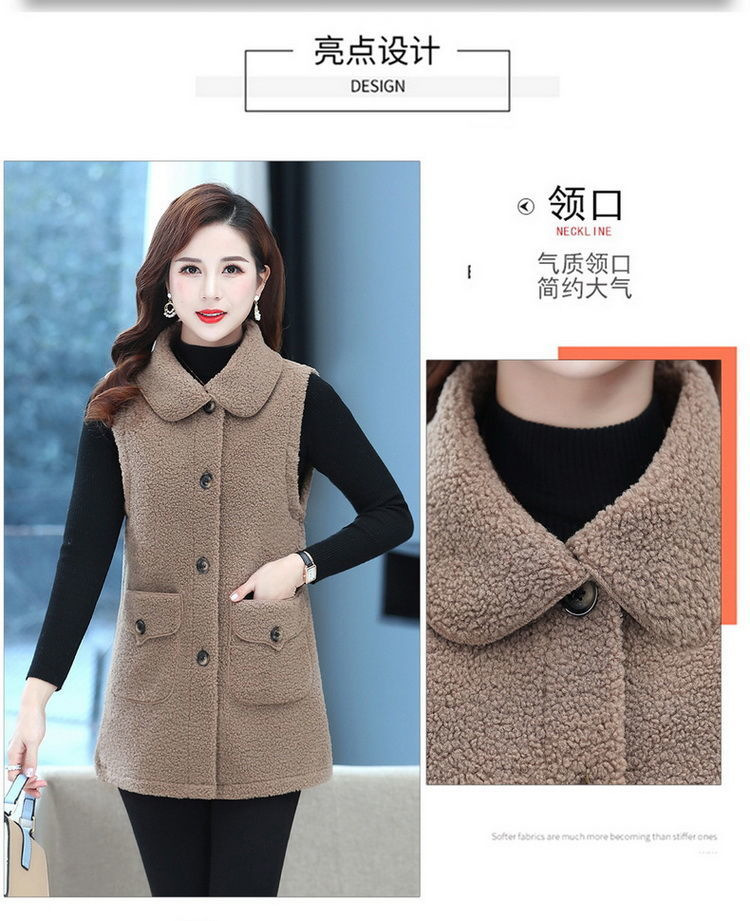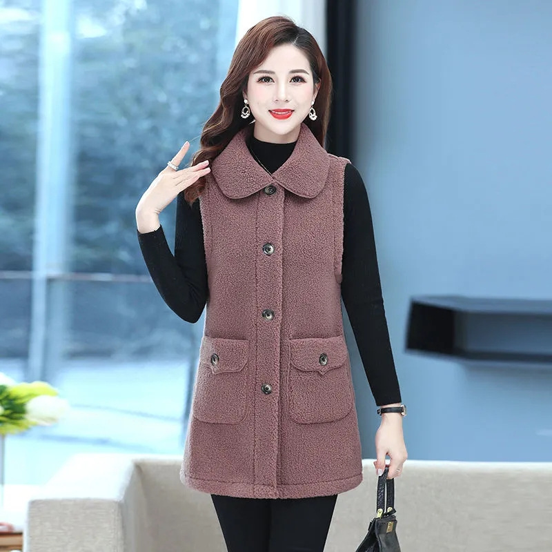 Жилет для похудения из овечьей шерсти для средних и пожилых людей, Женское пальто на флисовой подкладке, утепленный жилет без рукавов для полных девочек, свитер на пуговицах