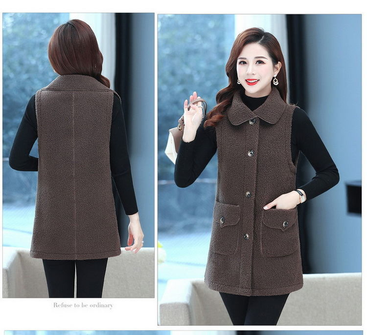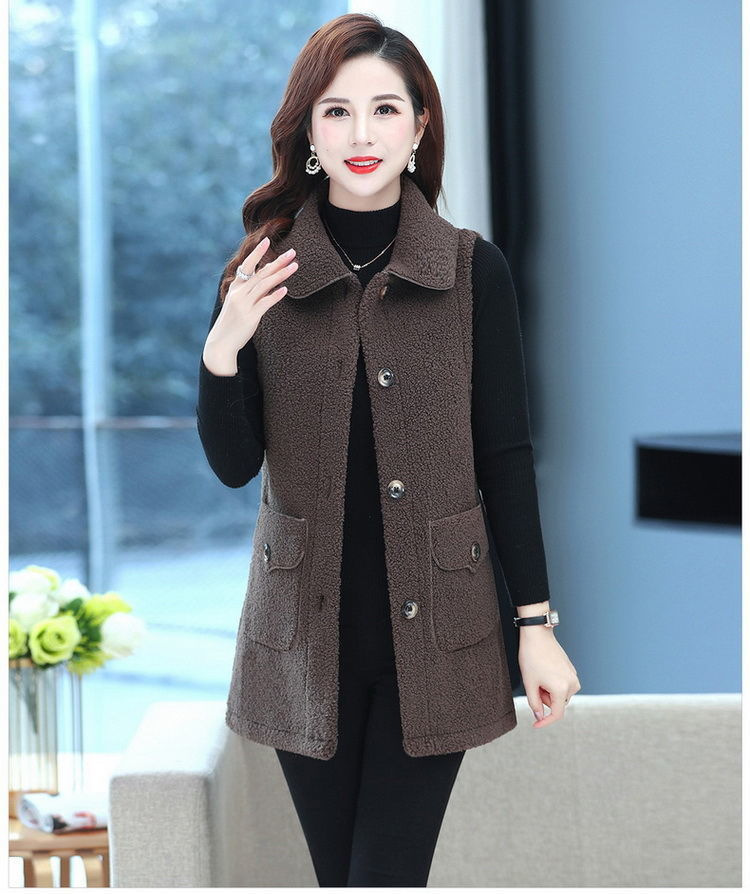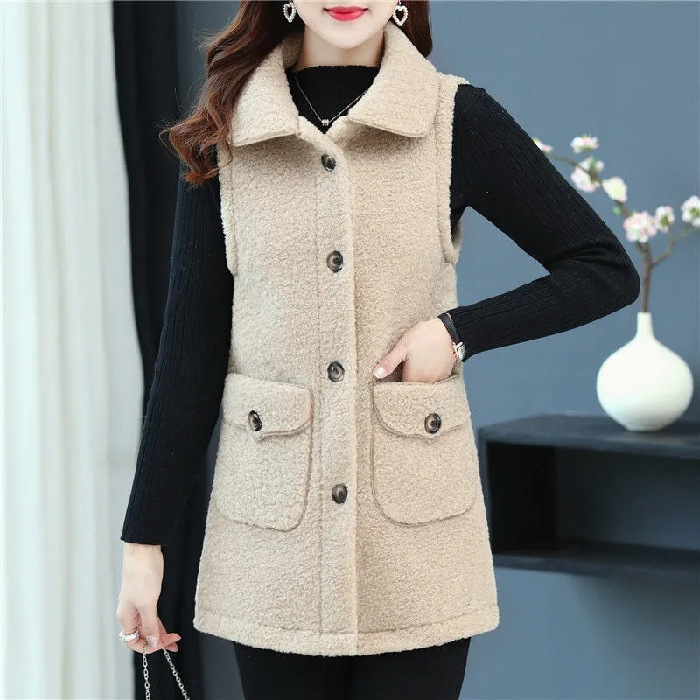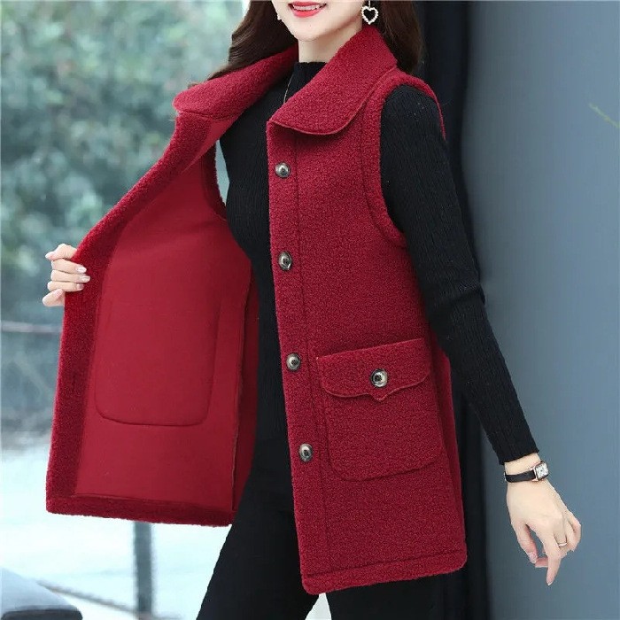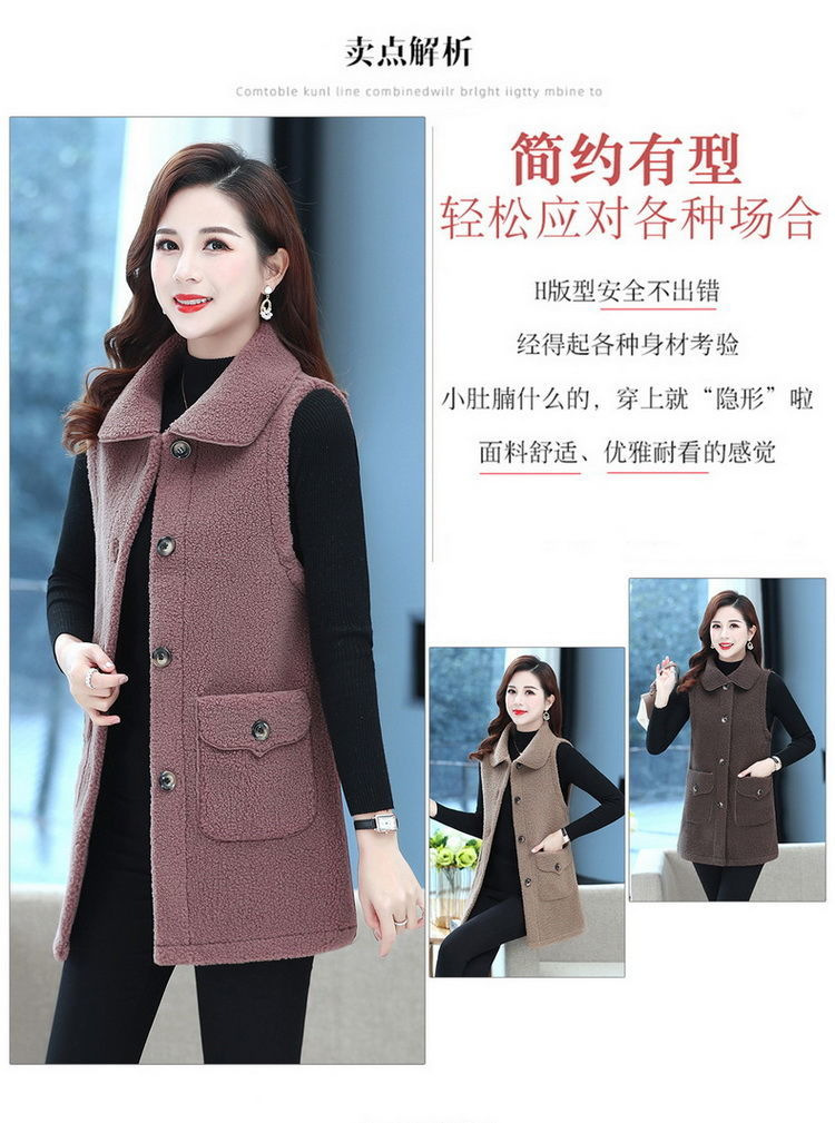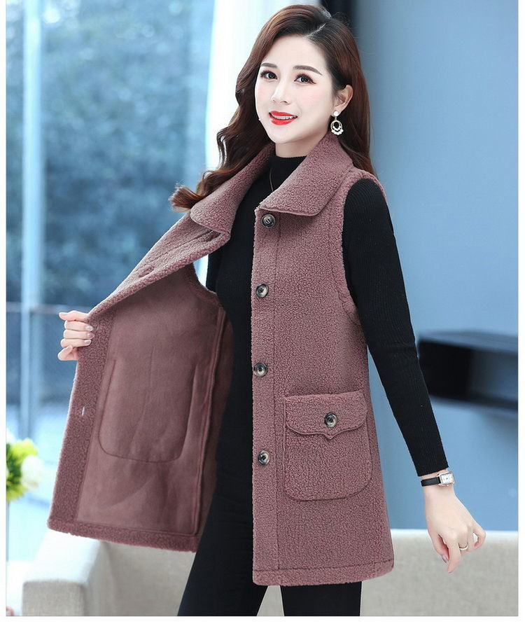 Жилет для похудения из овечьей шерсти для средних и пожилых людей, Женское пальто на флисовой подкладке, утепленный жилет без рукавов для полных девочек, свитер на пуговицах