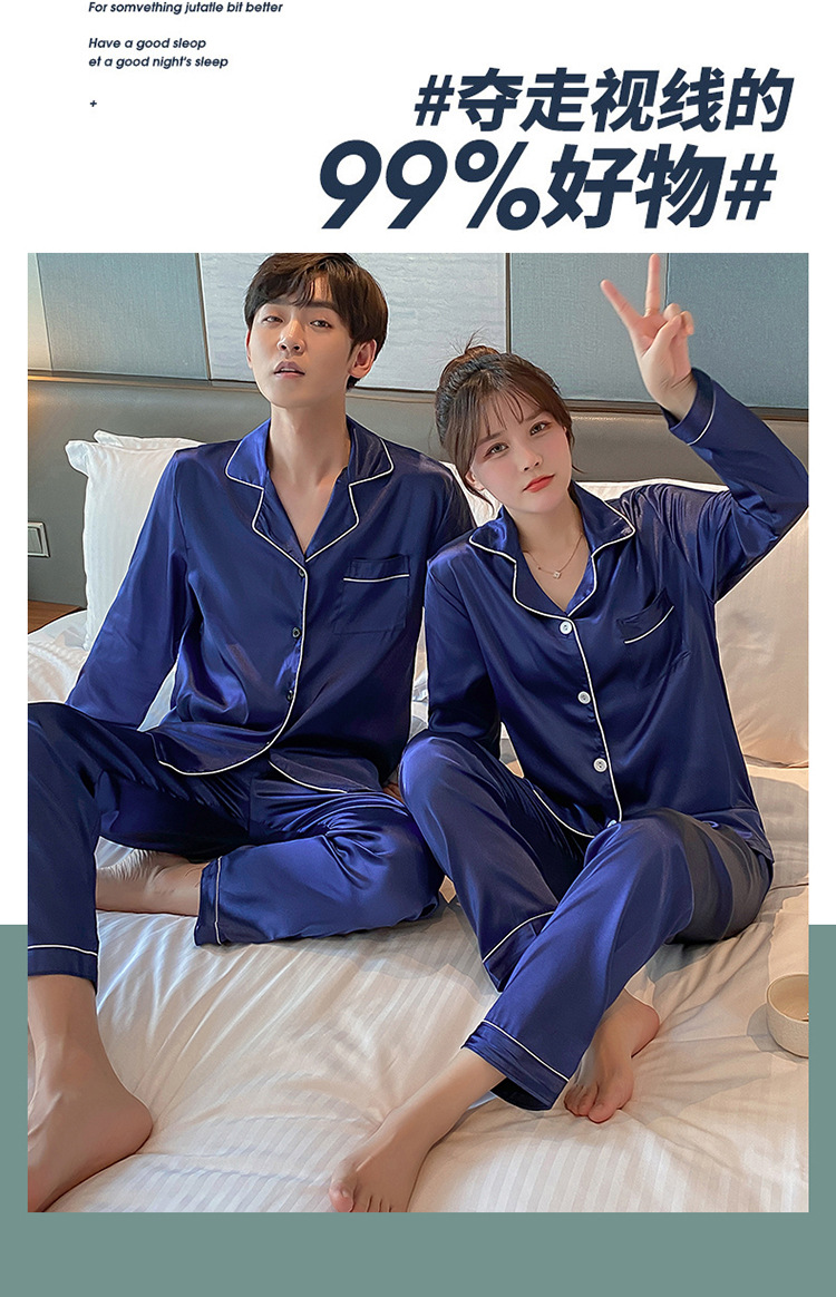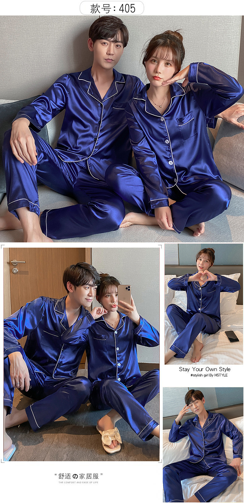 Новый стиль пижамы для пары, женские тонкие мужские брюки из искусственного шелка с лацканами и длинными рукавами, весна и осень, лето, домашняя одежда, ледяной шелк