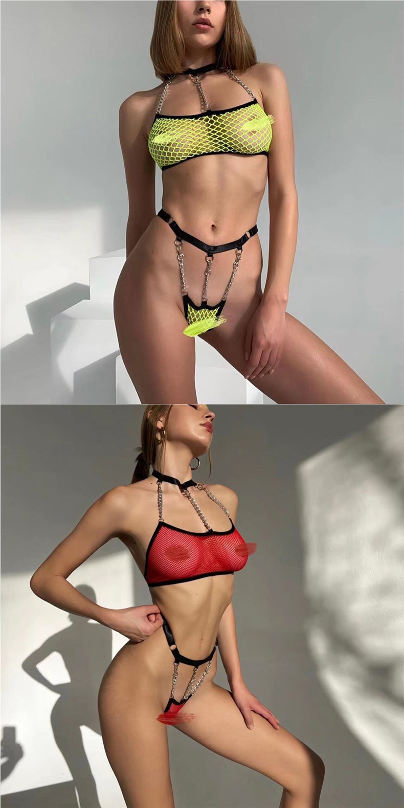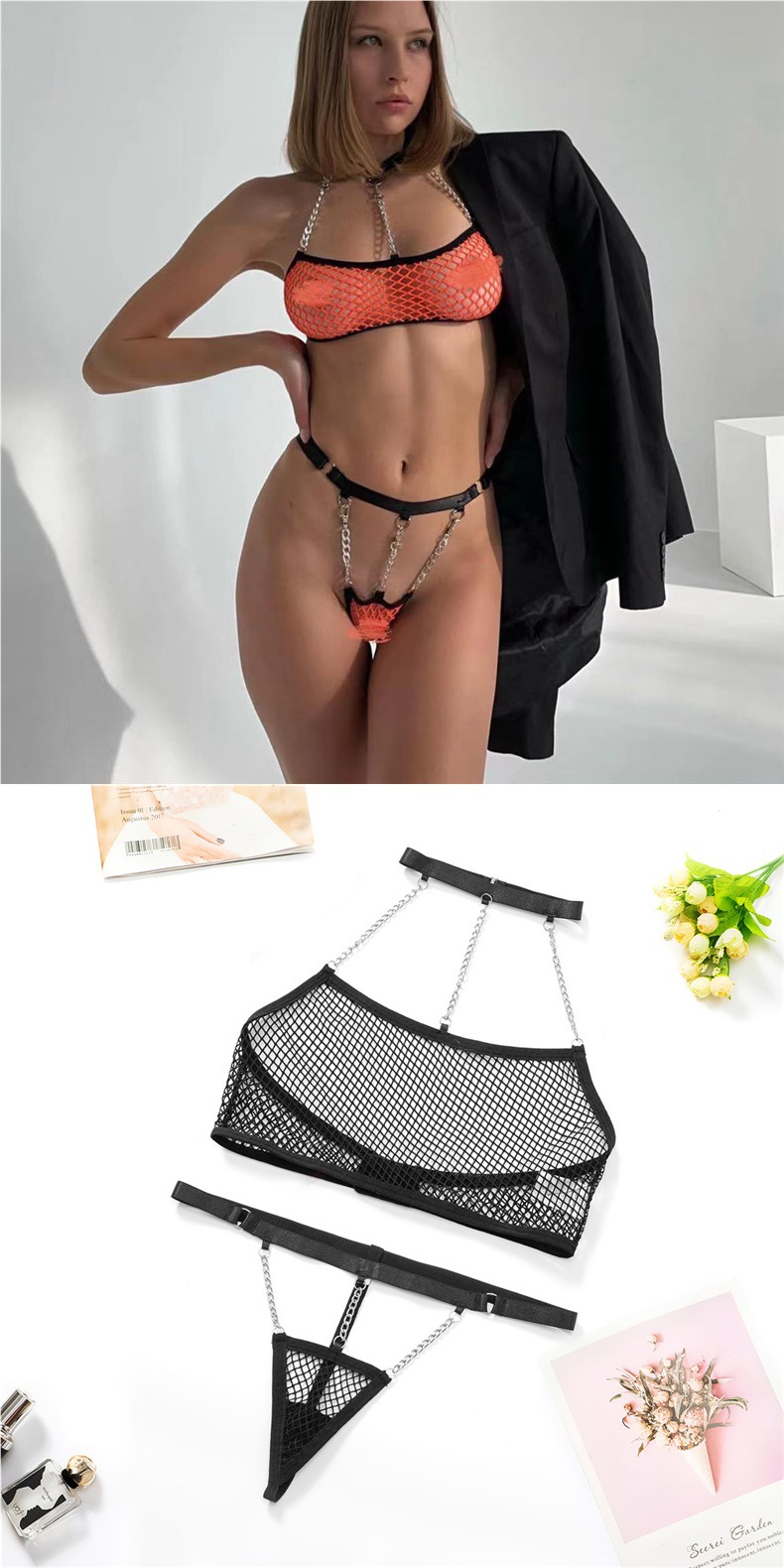 Amazon AliExpress европейский и американский размер сексуальный женский сетчатый бюстгальтер нижнего белья с металлической цепочкой сексуальный костюм 1012