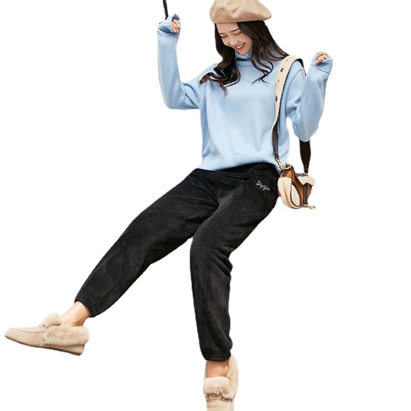 Двусторонние бархатные теплые брюки, женские зимние теплые коралловые бархатные повседневные свободные Пижамные брюки, домашние Студенческие теплые брюки для ленивых людей
