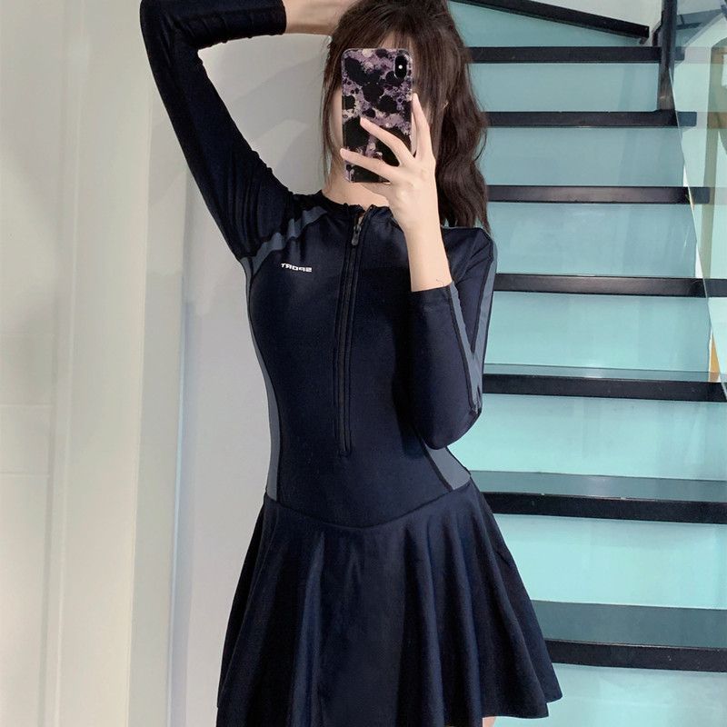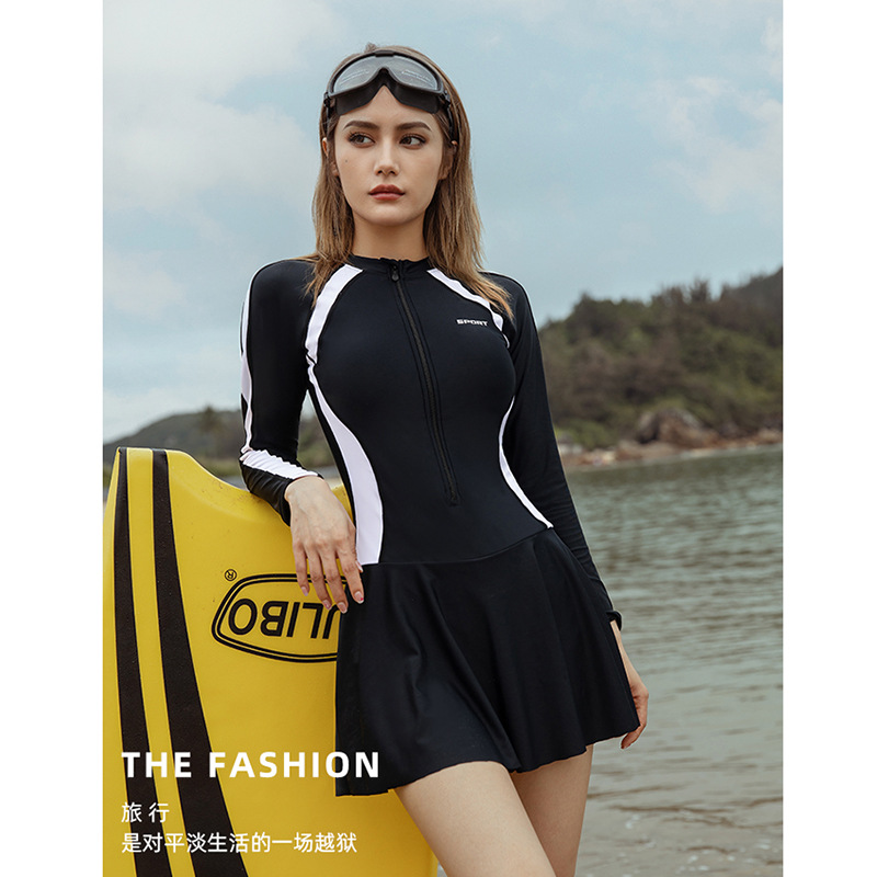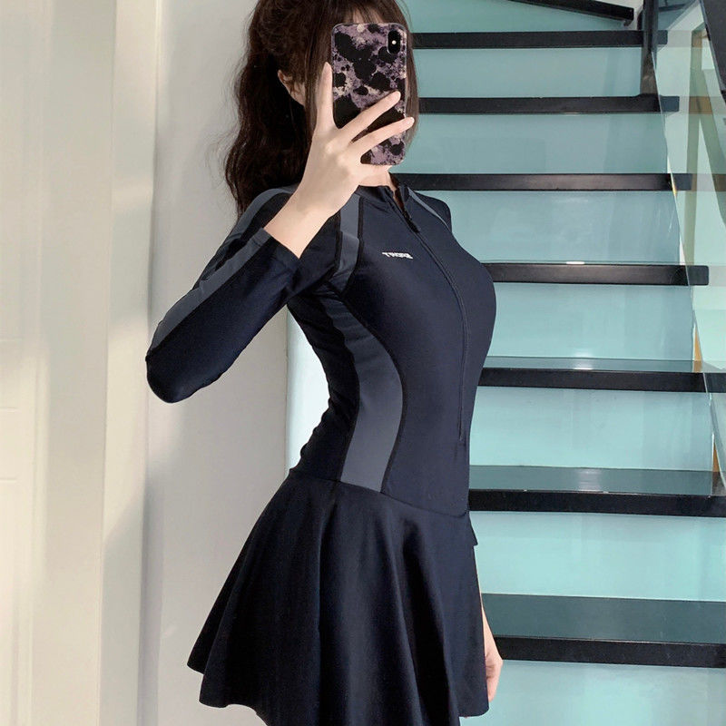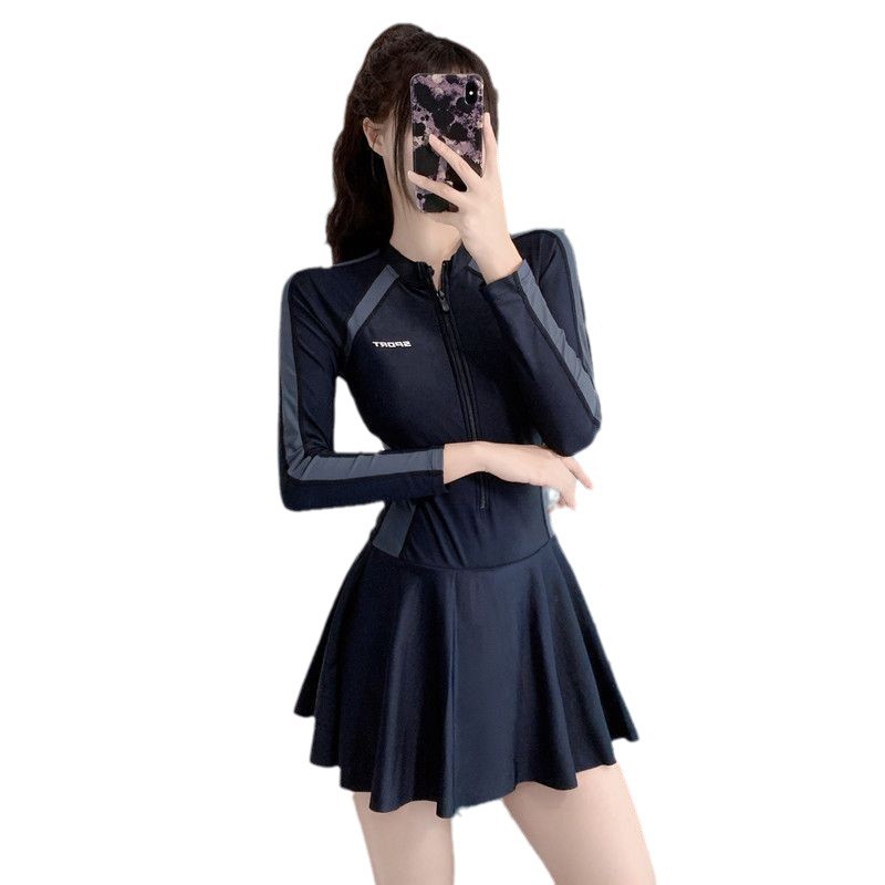 2023 Новые купальники Женская юбка в спортивном стиле Цельный солнцезащитный крем с длинными рукавами для бассейна, покрытый животом, купальники для похудения с горячей весной