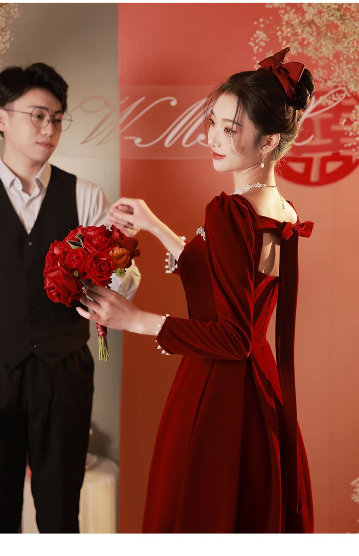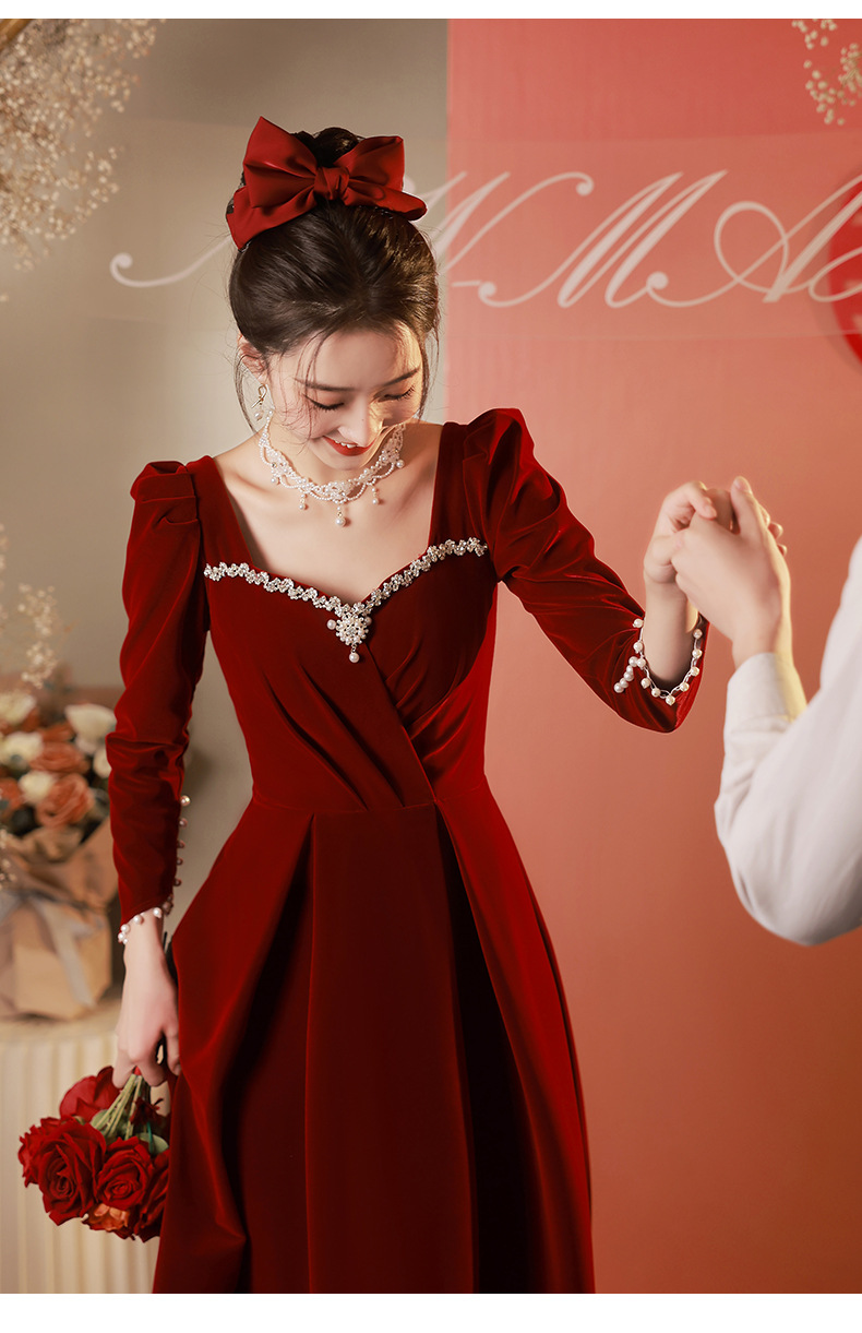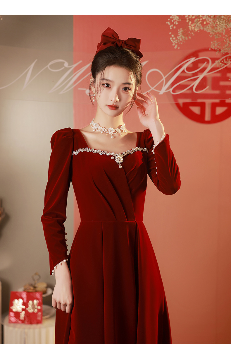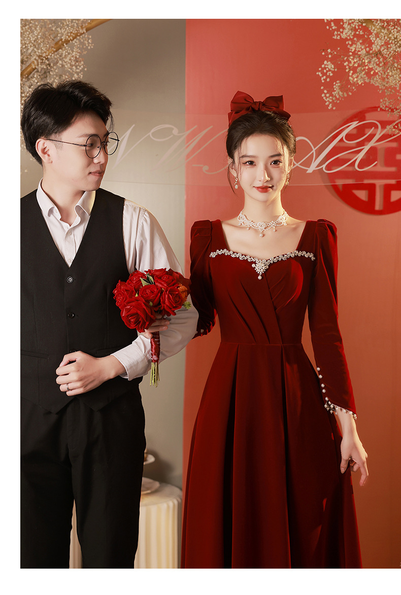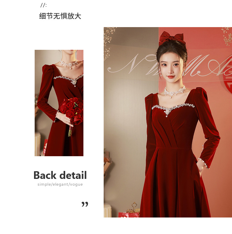 Одежда для тостов невесты, новинка 2025, бордовое обручальное платье на одно плечо, с длинным рукавом, бархатное свадебное привлекательное женское платье