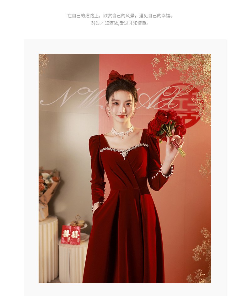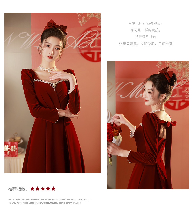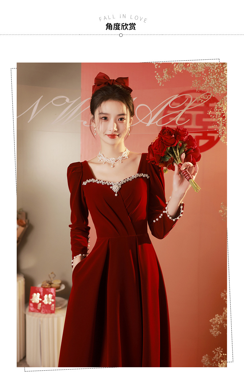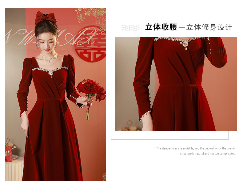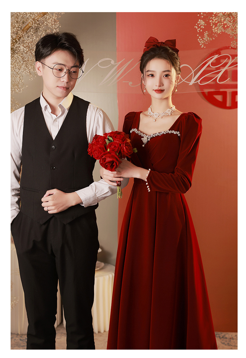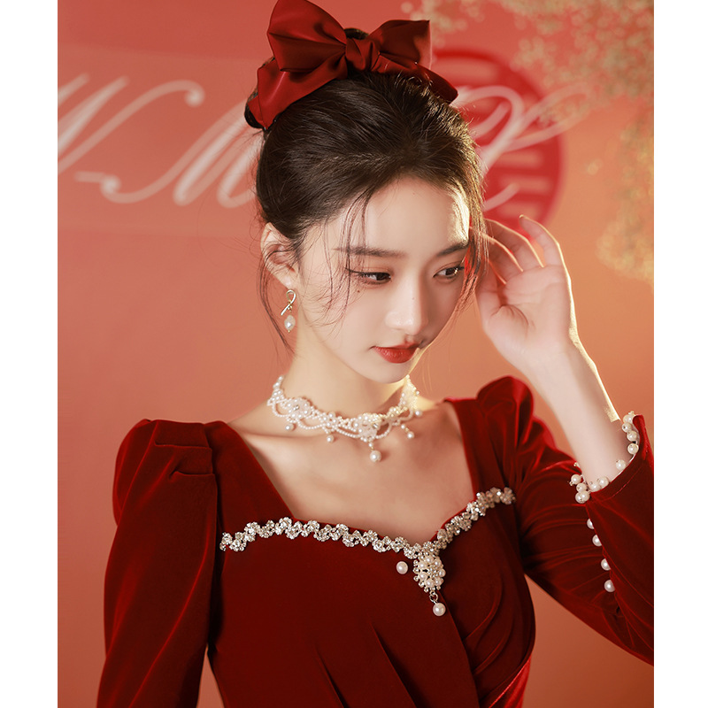 Одежда для тостов невесты, новинка 2025, бордовое обручальное платье на одно плечо, с длинным рукавом, бархатное свадебное привлекательное женское платье