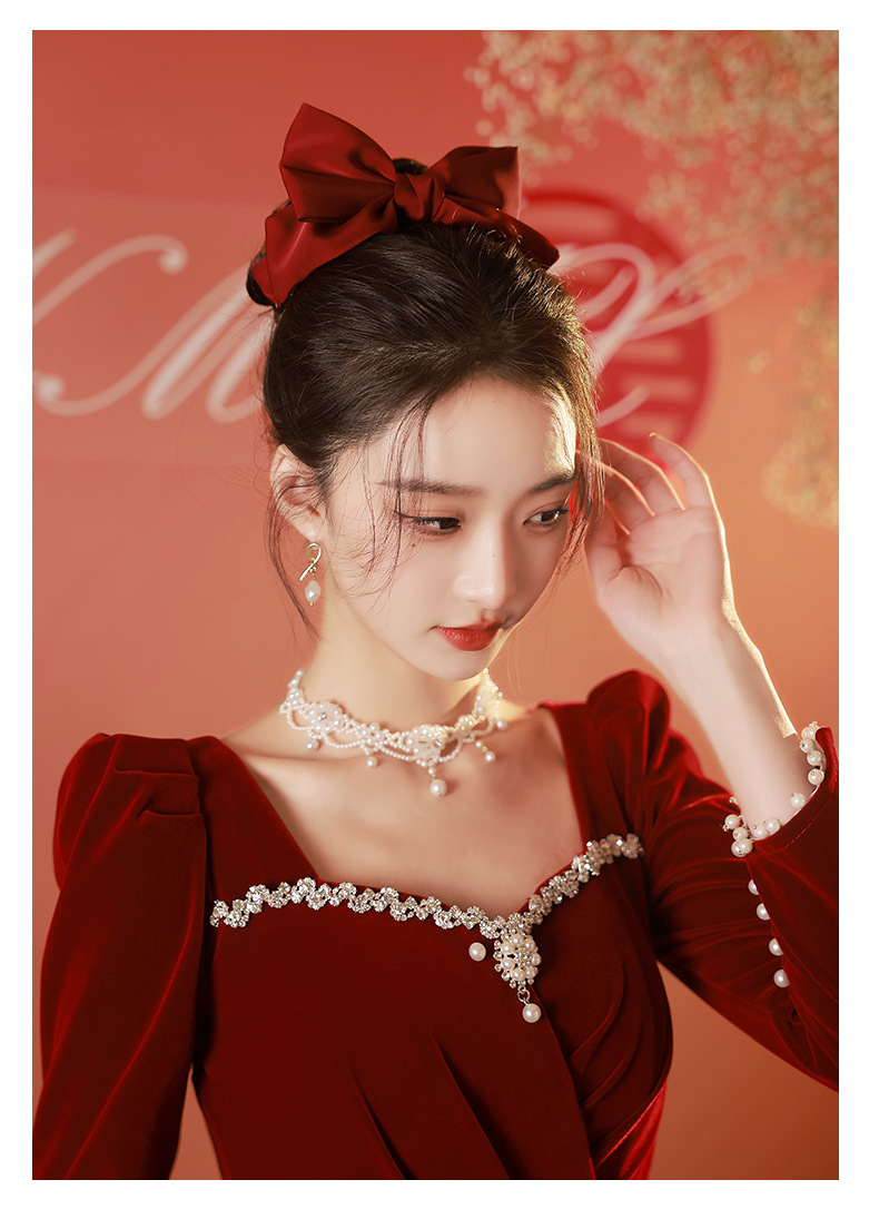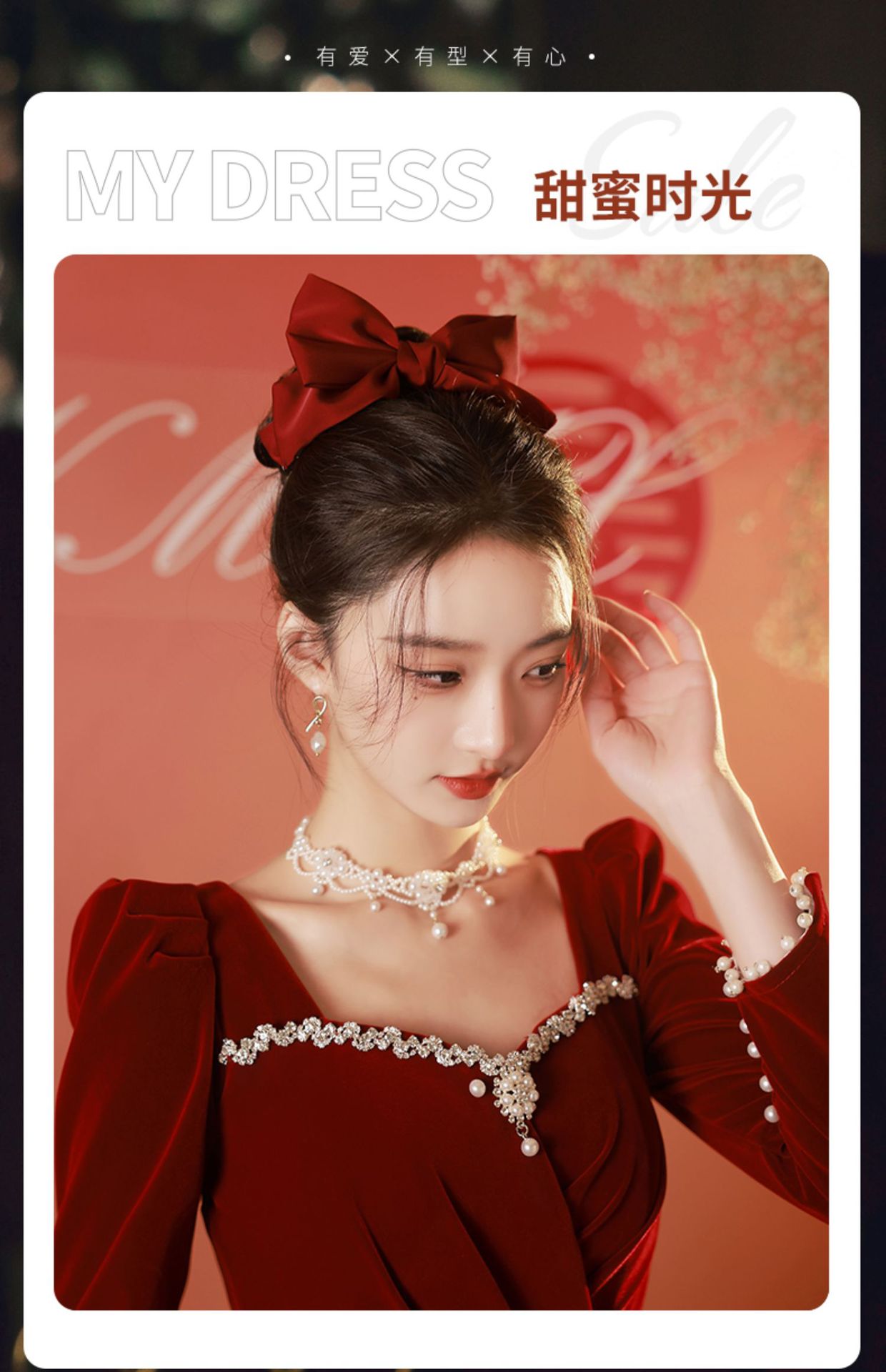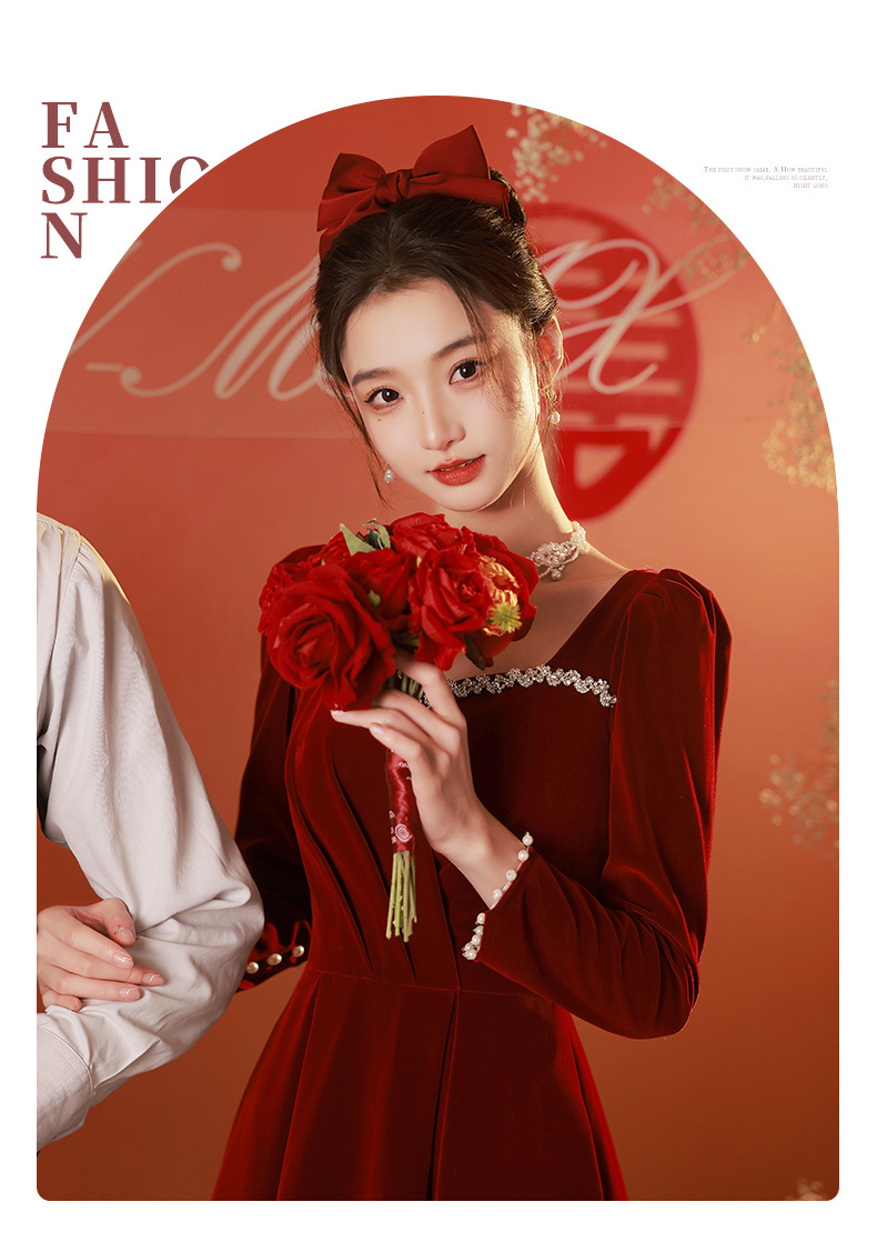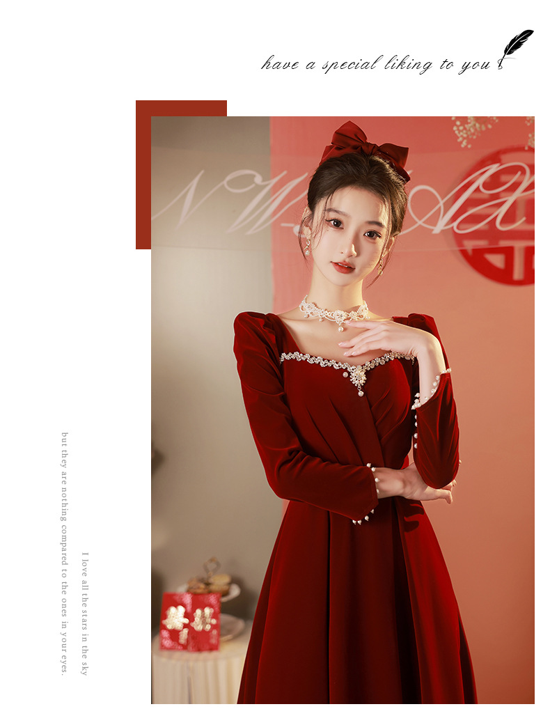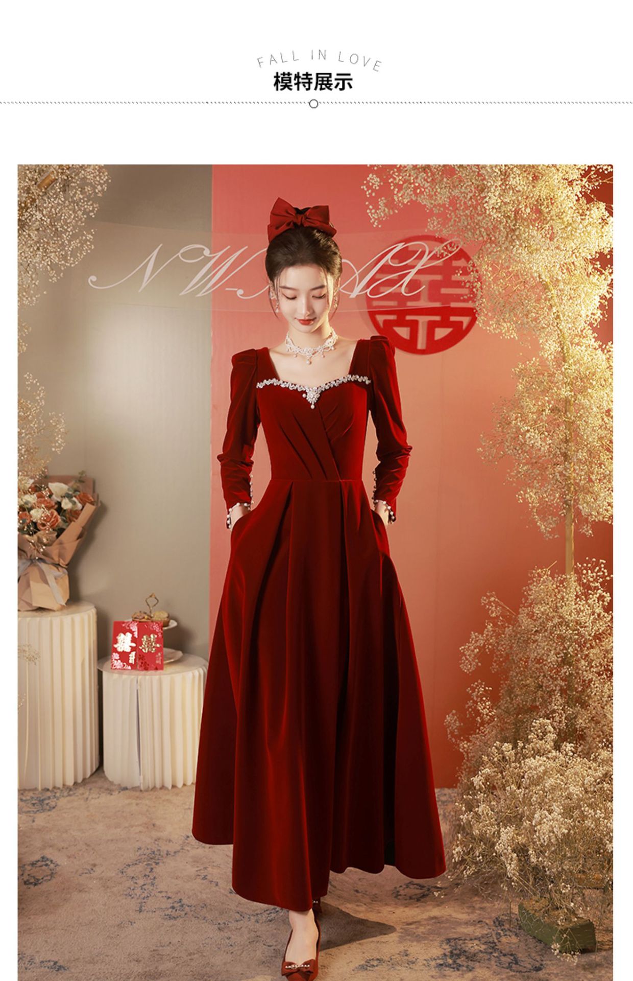 Одежда для тостов невесты, новинка 2025, бордовое обручальное платье на одно плечо, с длинным рукавом, бархатное свадебное привлекательное женское платье