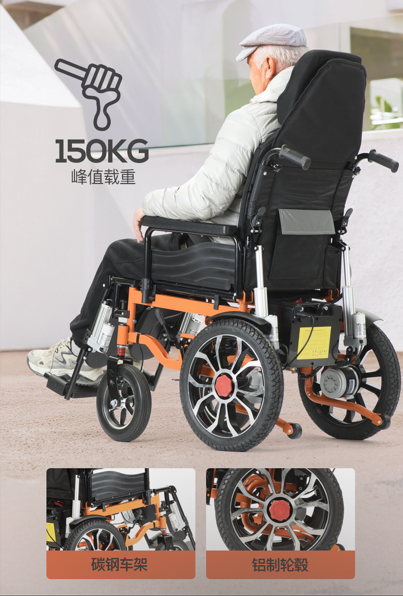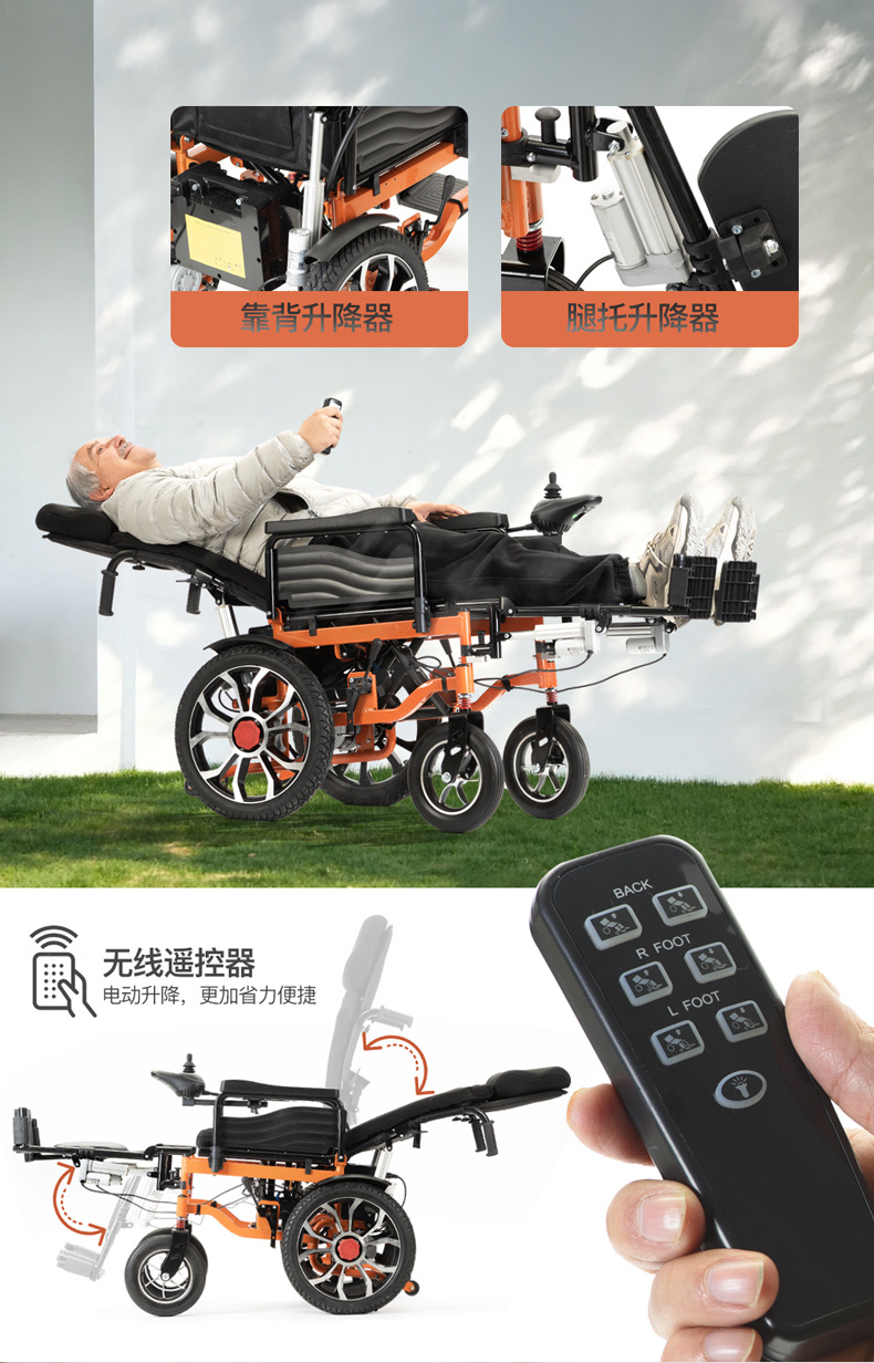 Прямые поставки с завода: популярное автоматическое кресло-коляска с откидной спинкой и автоматическим подъемом ног, складное, из углеродистой стали, для людей с ограниченными возможностями и пожилых.