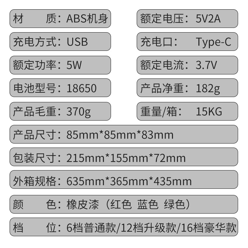 颜 色:橡皮漆(红色 蓝色 绿色)