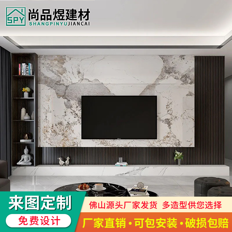 Подвесная каменная плита ТВ фон настенная плитка мраморный свет роскошный стиль Новая китайская гостиная телевизор стена невидимое украшение двери