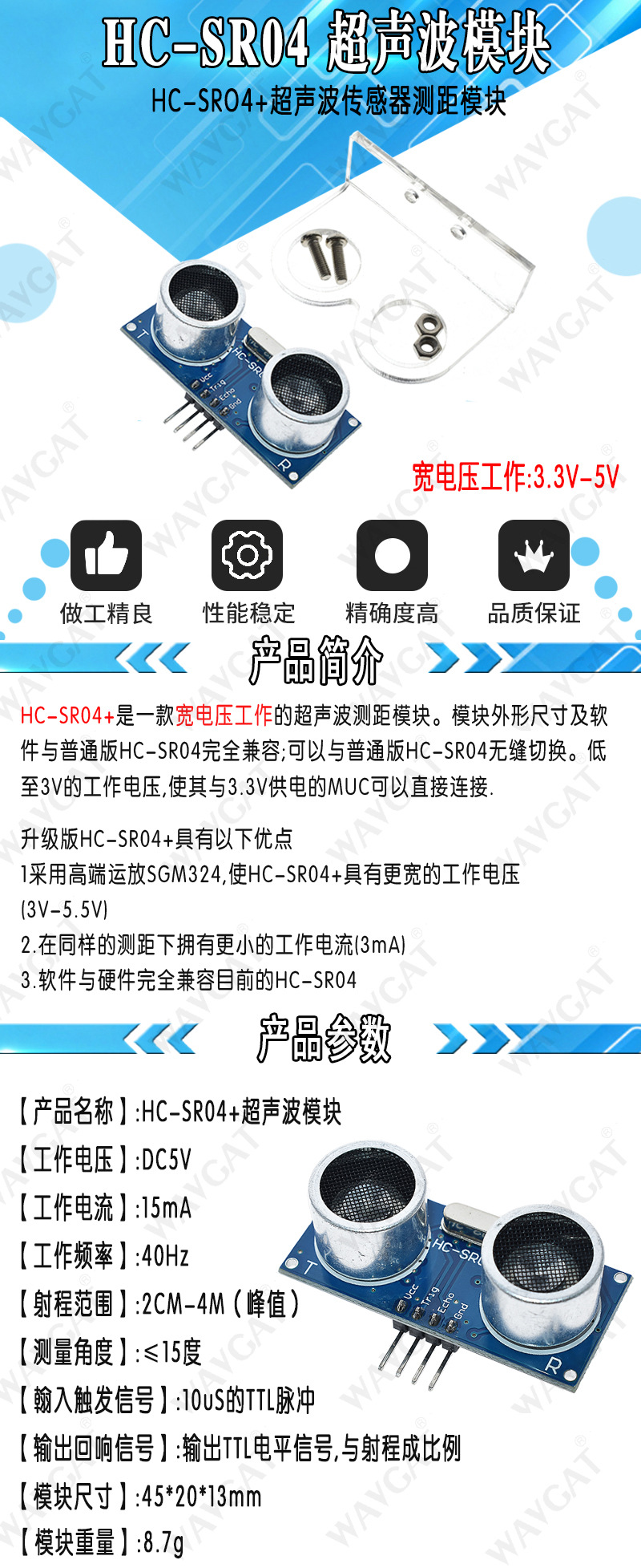 Новая версия широкого напряжения 3,3-5 В; Старая версия 5V; HY-SRF05 5V 5-контактный; США-016; KS103; Фиксированный кронштейн желтый; Фиксированный кронштейн Красный; Фиксированный кронштейн синий; Прозрачный фиксированный кронштейн; HC-SR04 тестовая плата; Ультразвуковой дальномер модуль + свинец; Ультразвуковой дальномерный модуль; Одиночный свинец; HC-SR04 Однокристальное широкое напряжение 3,3-5 В; США-100