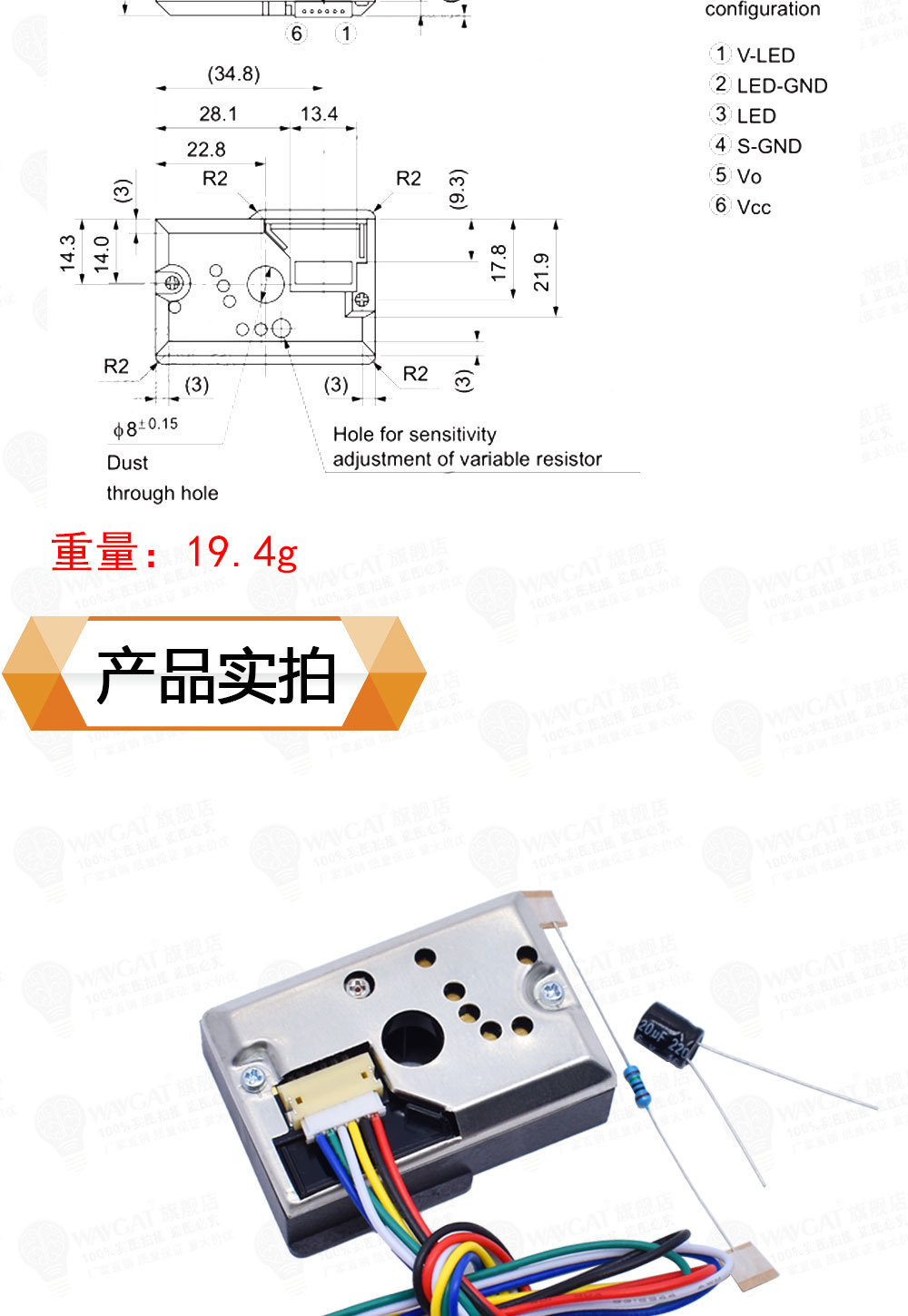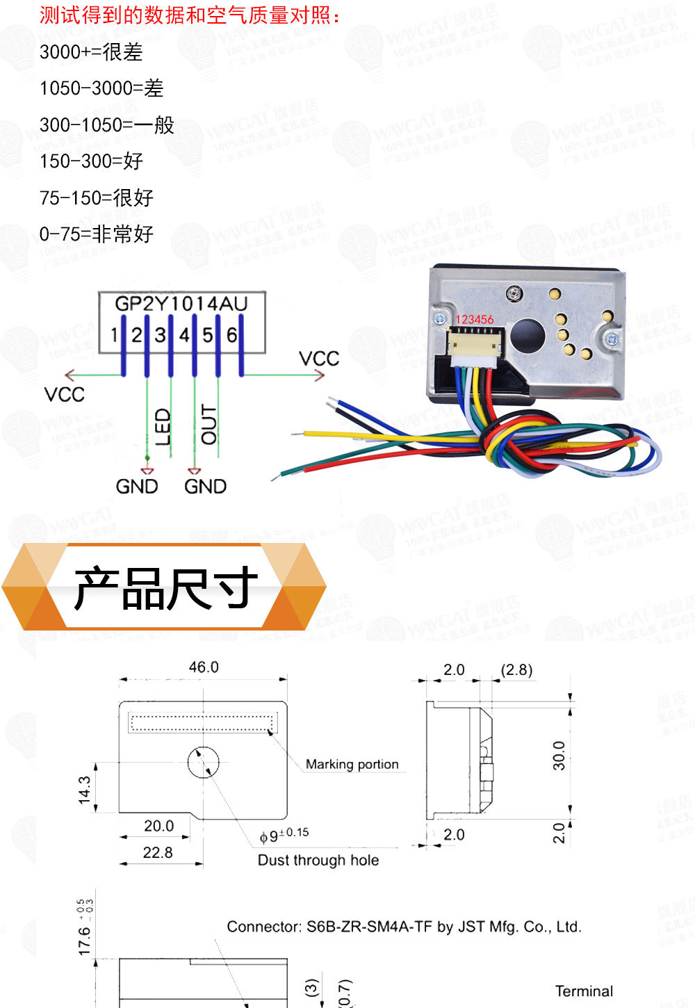 Модуль датчика пыли GP2Y1014AU Датчик пыли PM2.5 вместо GP2Y1010AU0F