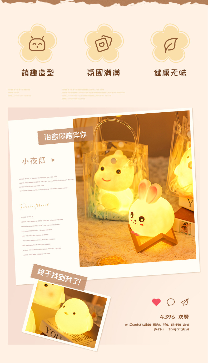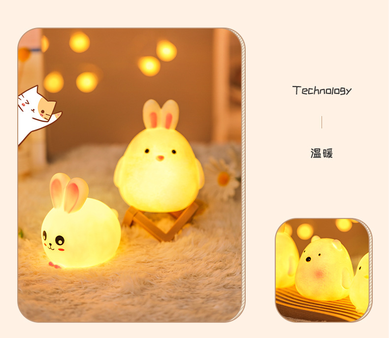 Новогодний благоприятный кролик виниловый светодиодный ночник отключен от сети, детская спальня, прикроватная тумбочка, Креативные украшения, кролик, ночник