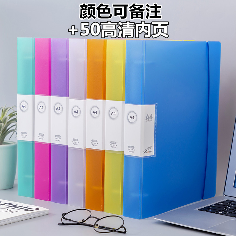 Папка-скоросшиватель Jieyi A4, прозрачная, цветная, с перфорацией, тип D, на 100 страниц, для документов, экзаменационных работ, с карманами для вкладышей