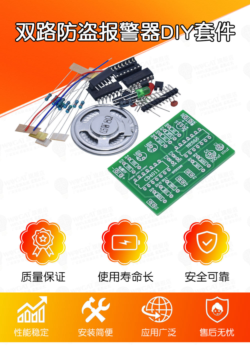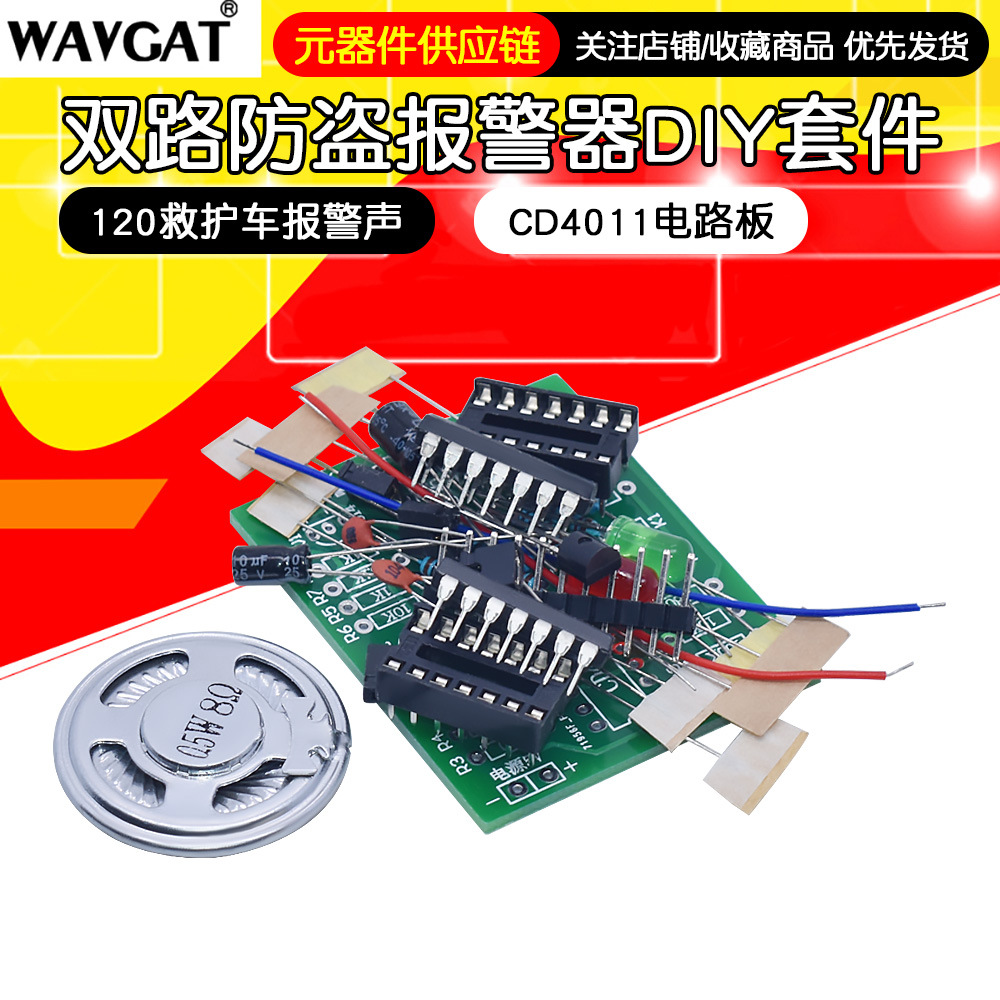 Двухканальный комплект противоугонной сигнализации 120 звуковой сигнал скорой помощи CD4011 печатная плата NE556 чип