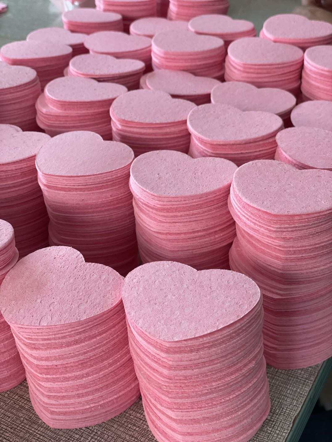Amazon Hot Pink Heart-Shaped Compressed Wash Деревянная масса Хлопок Увеличенная Очищающая 50 штук в наборе воды