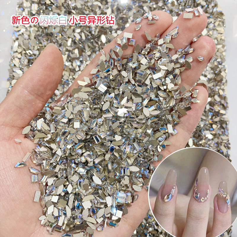 Мини-стразы для дизайна ногтей, модные маленькие нерегулярные стразы с плоским дном, маленькие белые полупрозрачные аксессуары для украшения ногтей