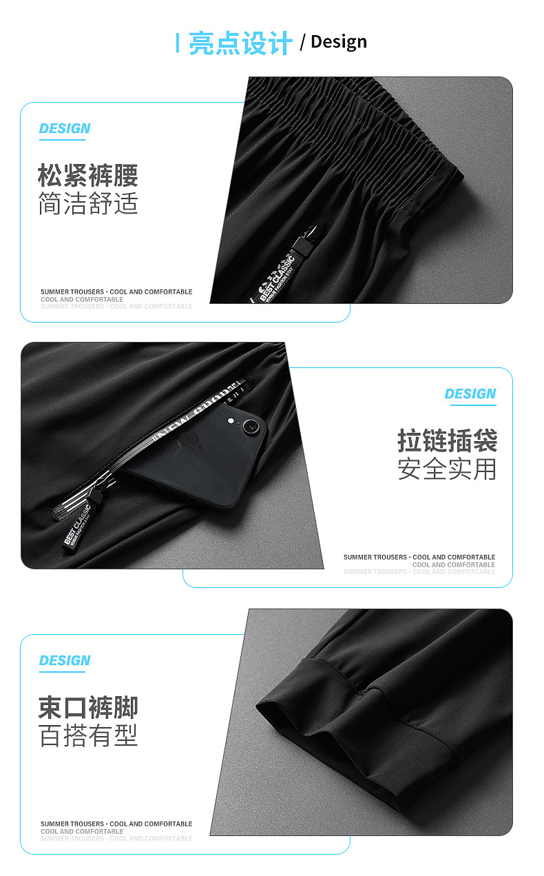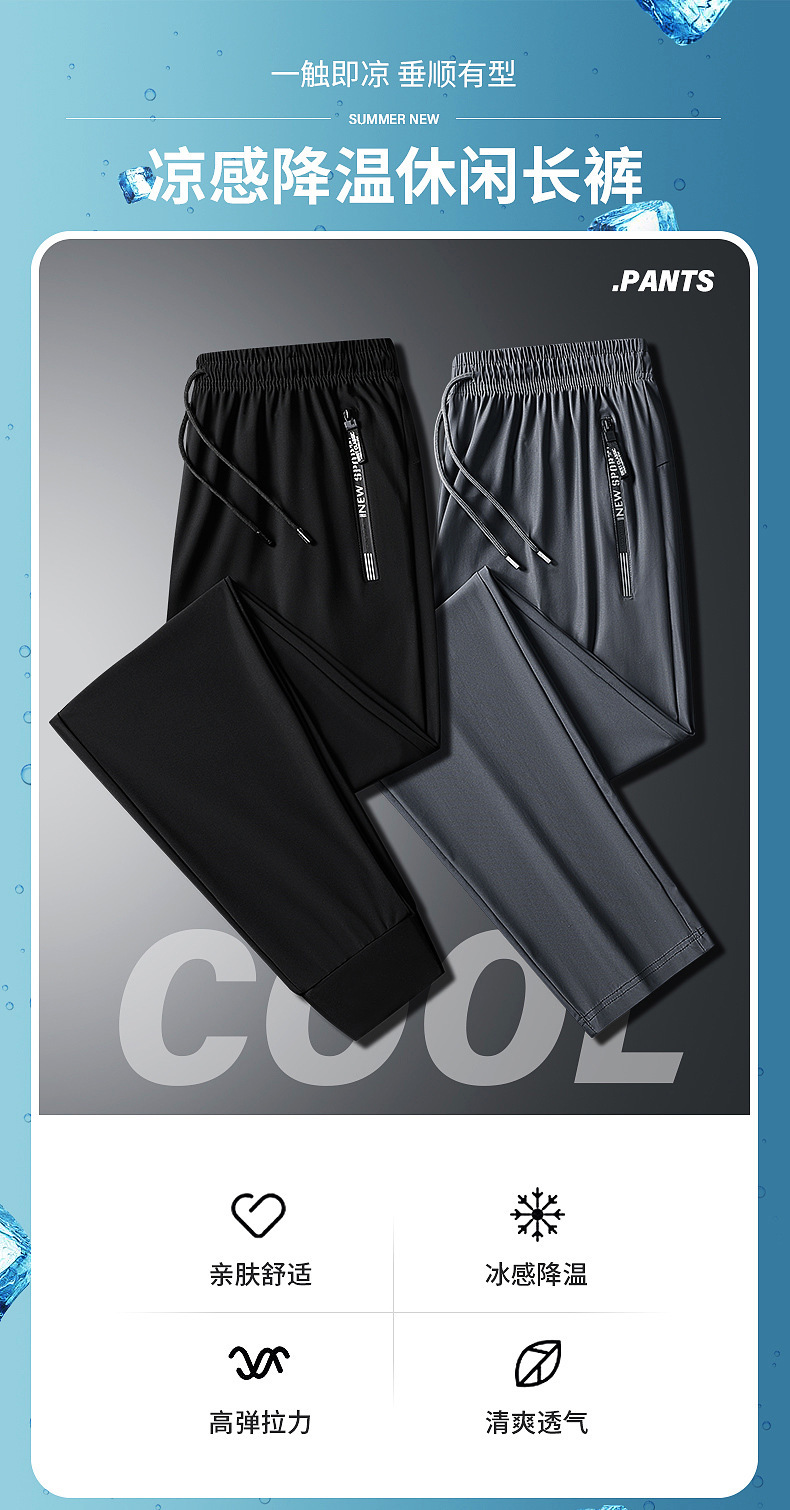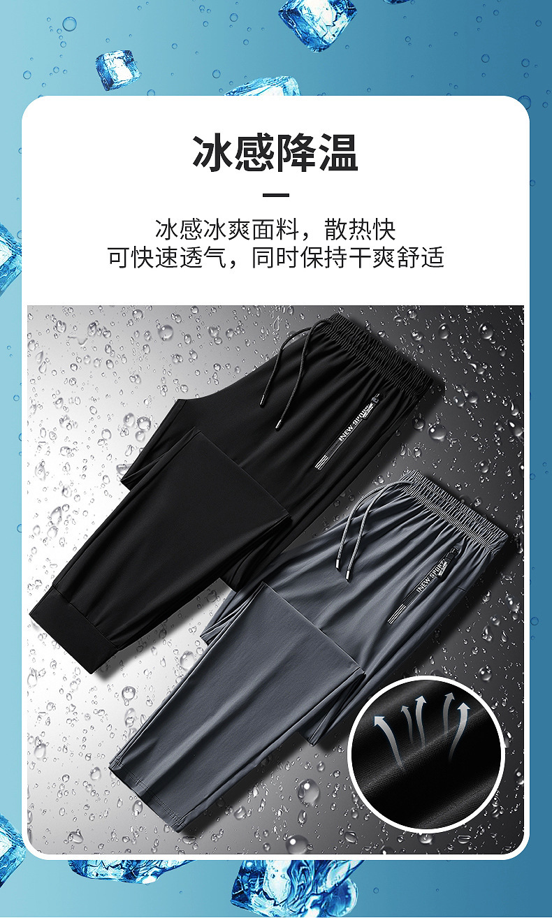 Ледяные брюки Мужские летние новые быстрые сушки длинные брюки Тонкие свободные брюки с кондиционером эластичные закрытые повседневные спортивные штаны большого размера