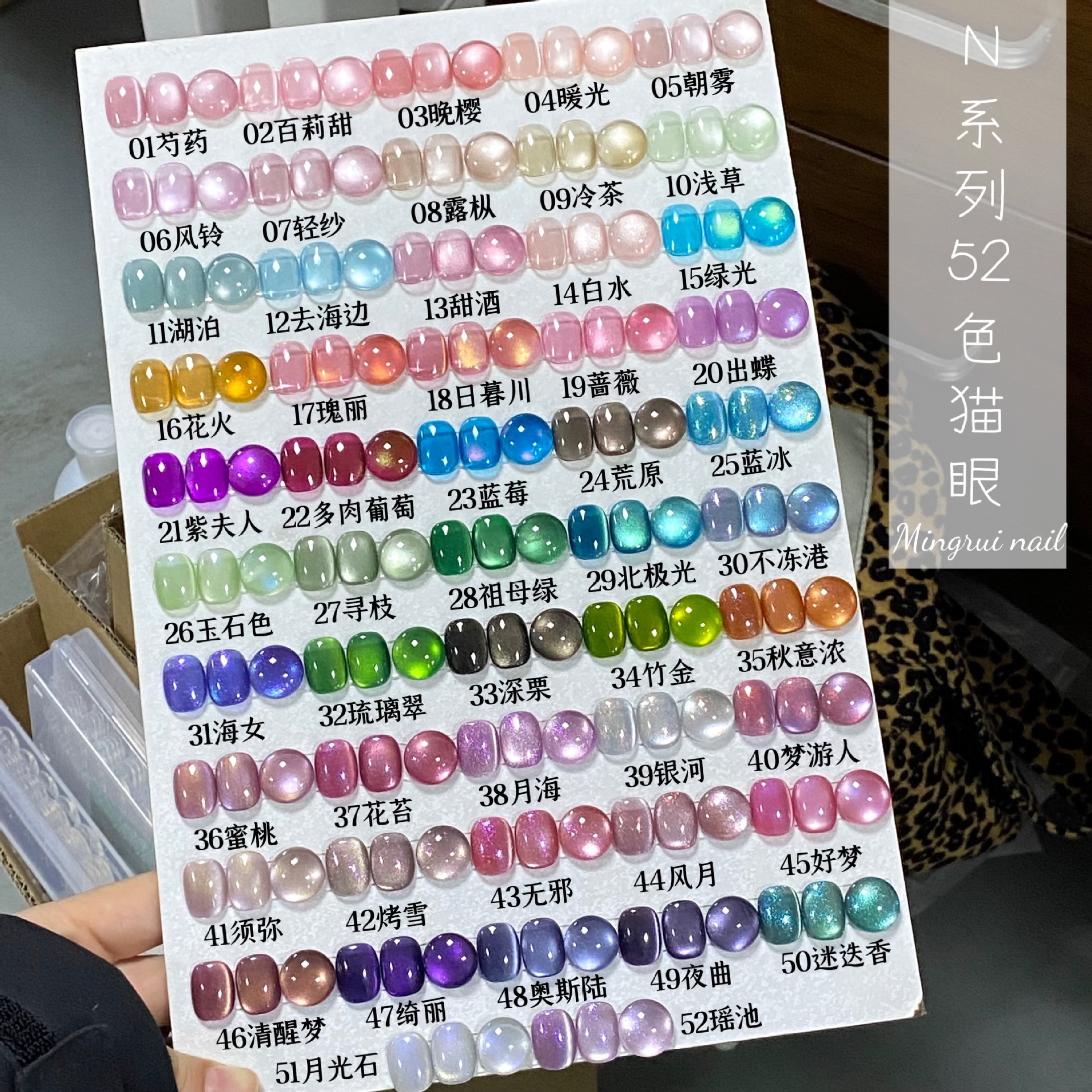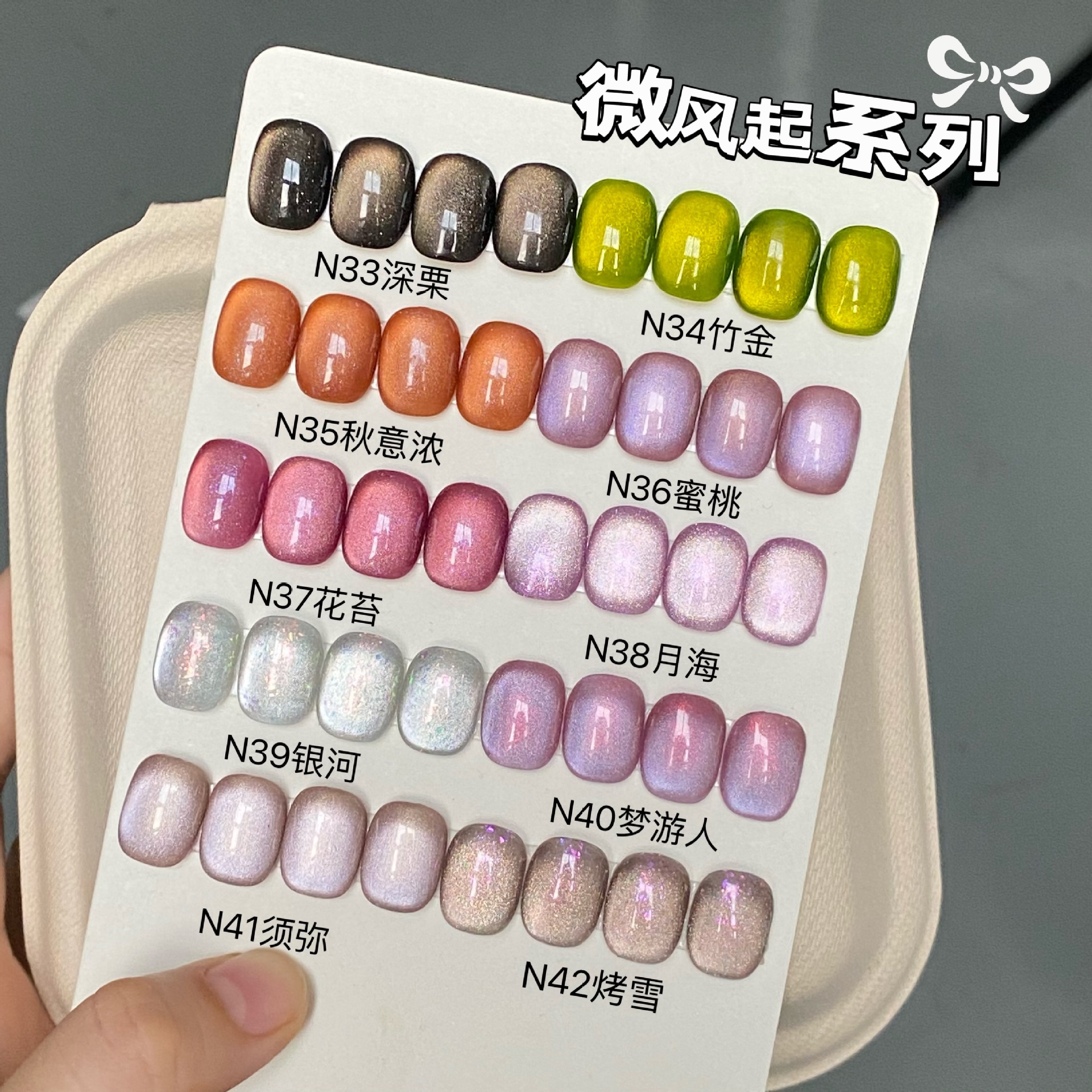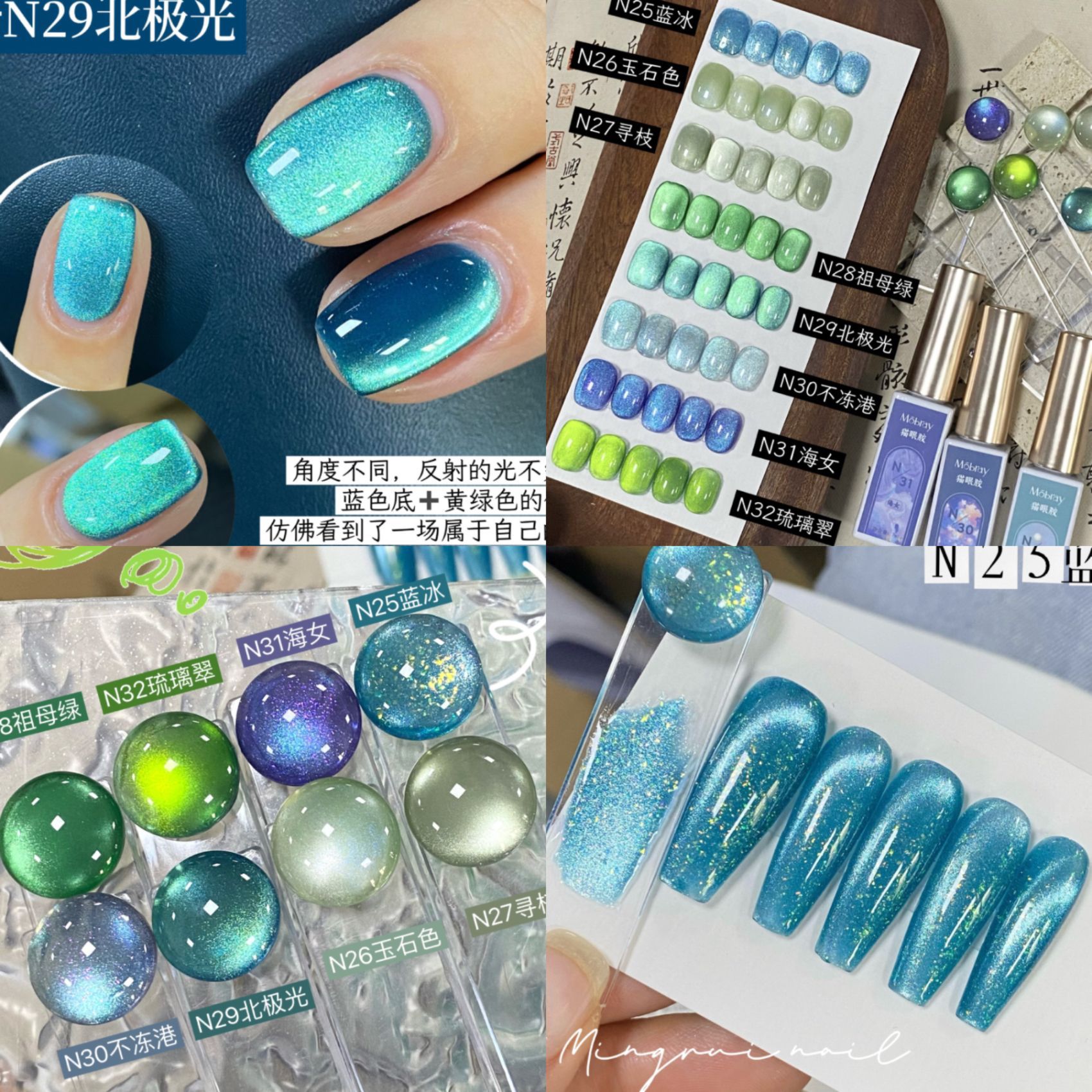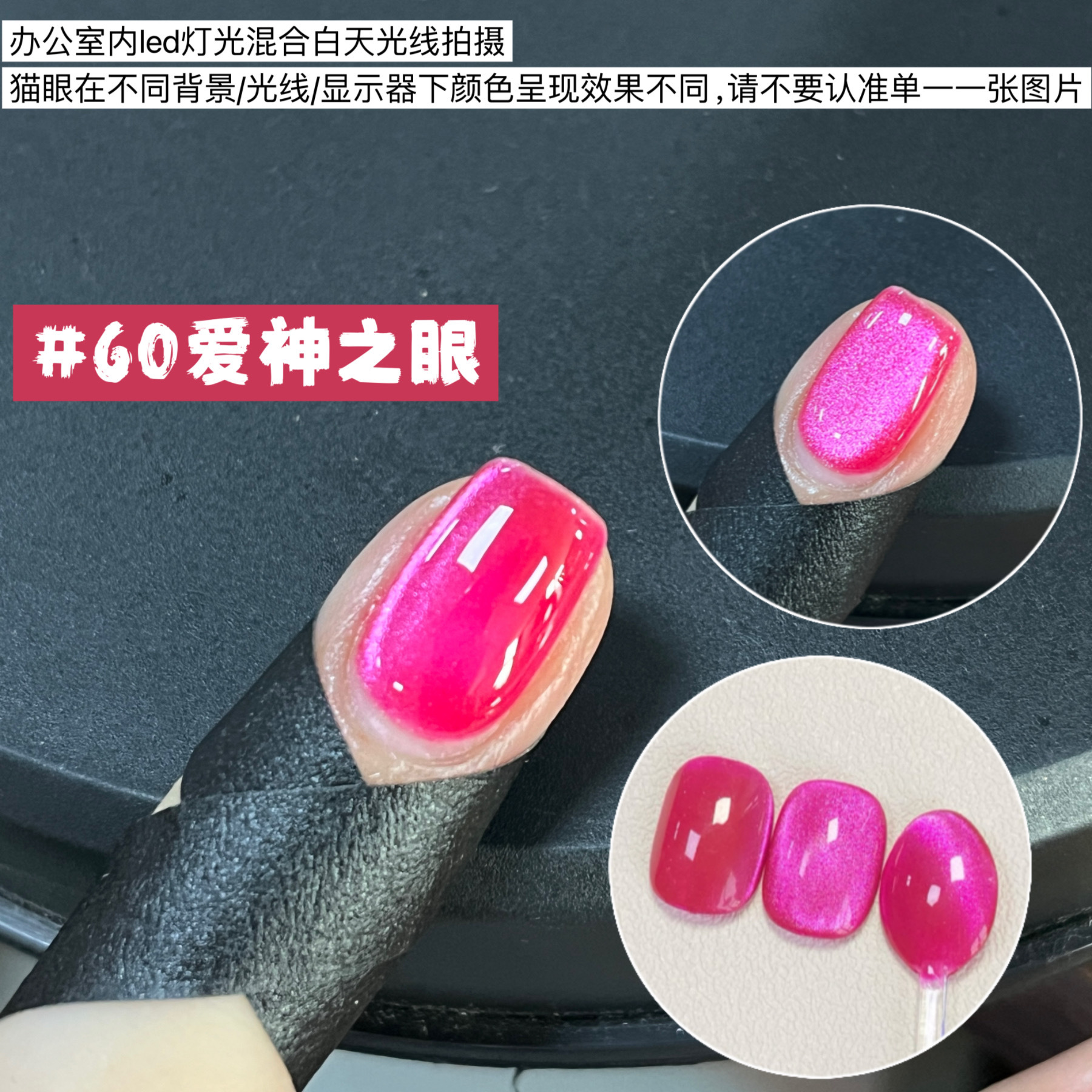 其中部分颜色M59桃夭、M73柔丽丝自带欧泊粉素材,仙气满满。M71日落限定是橙色偏光猫眼。M64无花果、M66焦茶、M67夜桂花、M68香槟为红茶棕色系猫眼,自带秋冬氛围感,磁粉不是单一的银色哦,跟市面上常规白光猫眼不一样,敬请品鉴。M60爱神之眼是很正的火龙果色猫眼,磁粉很细腻、M67野玫瑰、M62黛西磁粉粗细中等,搭配上亮片会很米。