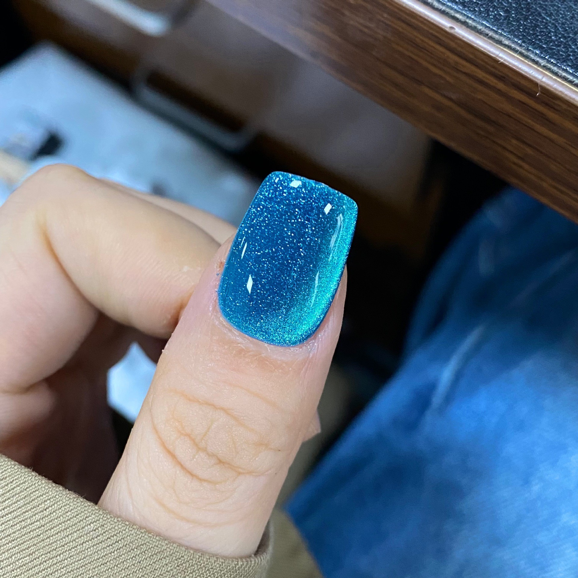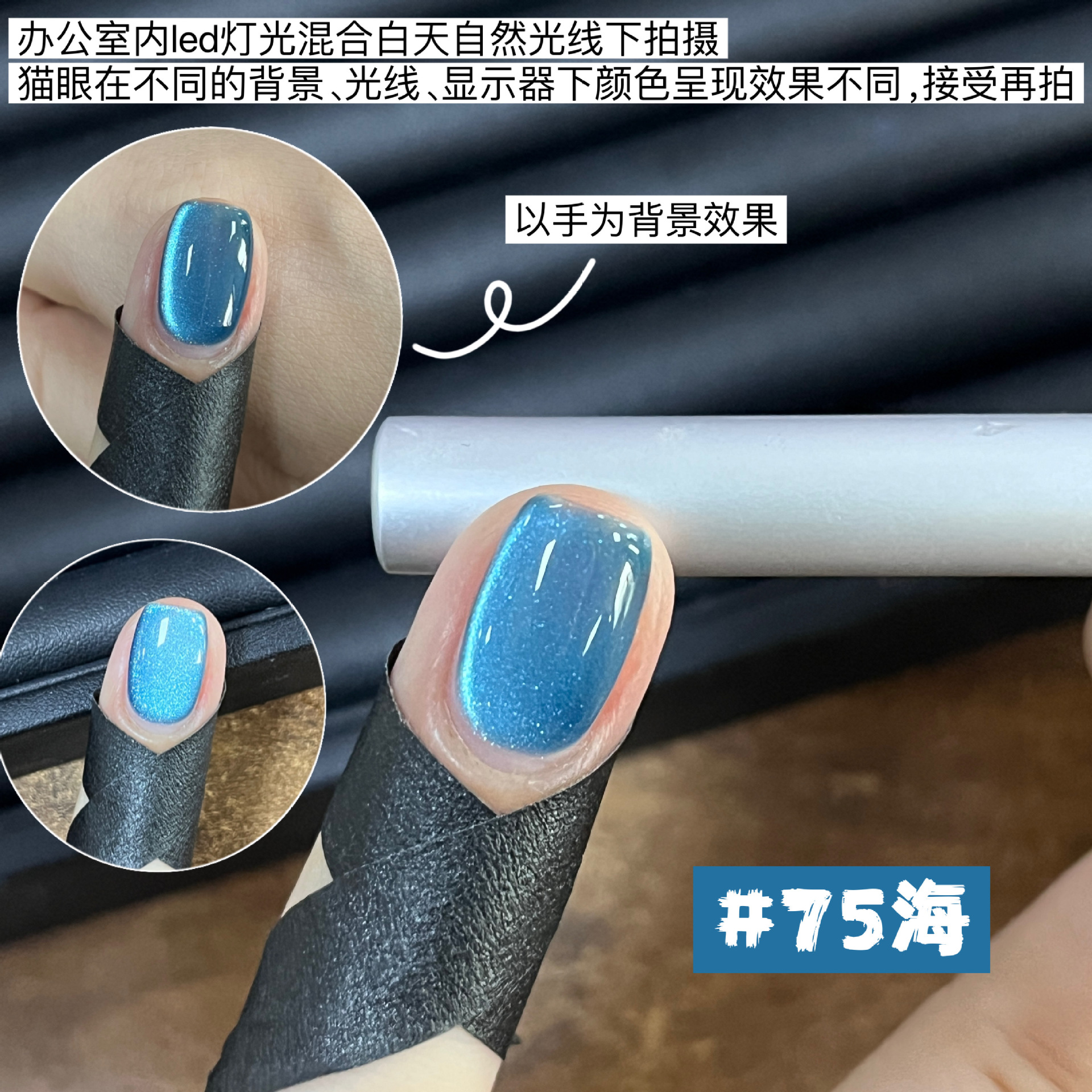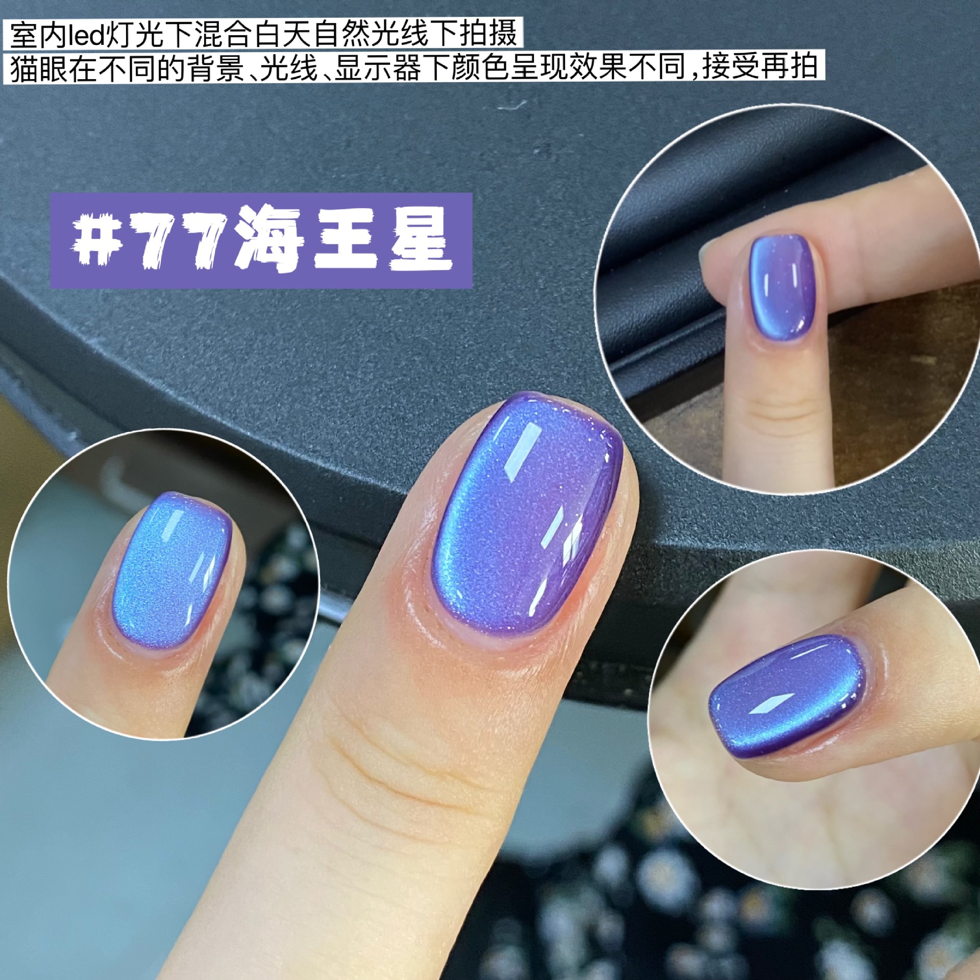 或在吸好猫眼后,叠涂一层透色或者蹭上极光粉等。