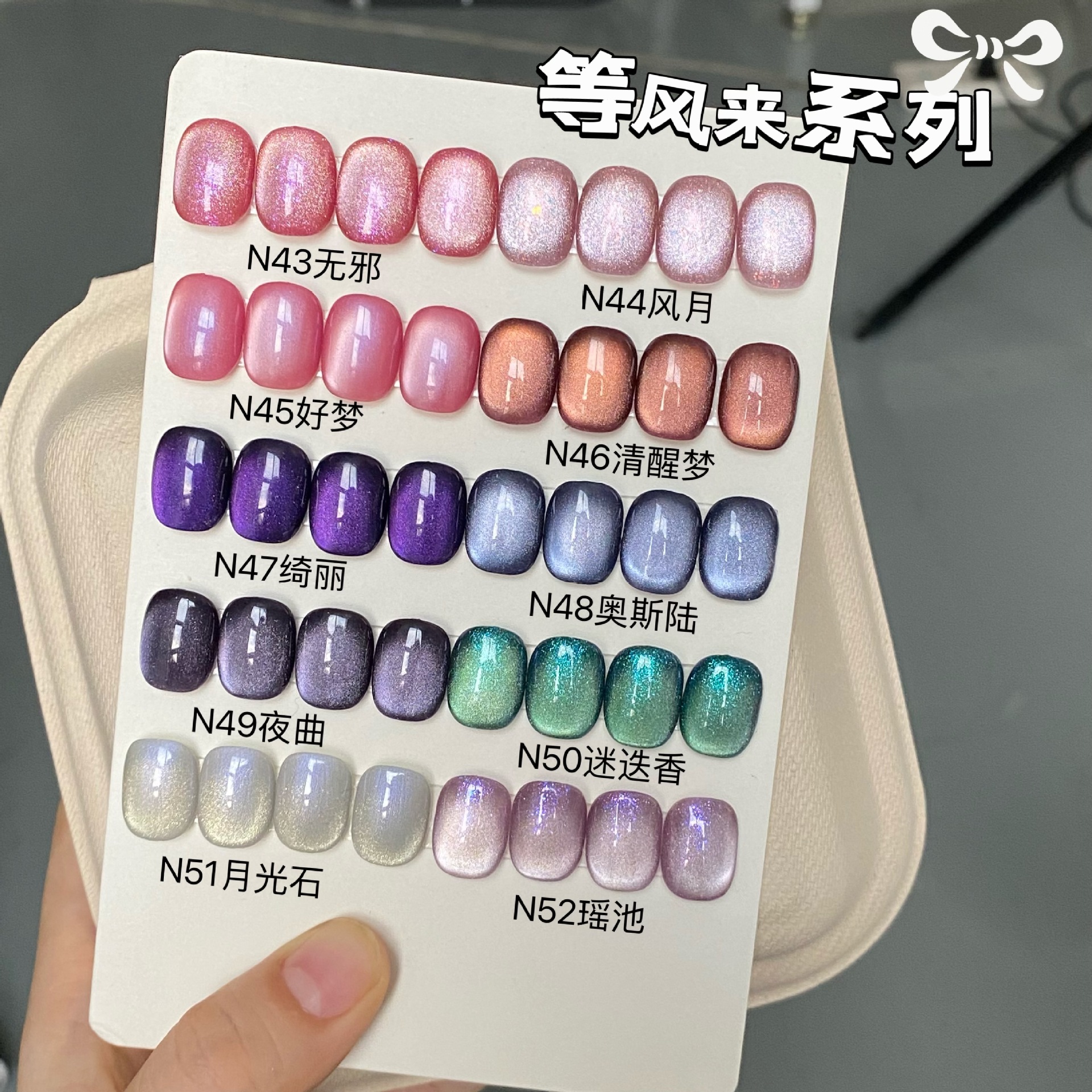 Примечание! Чтобы обеспечить долговечность при нанесении кошачьего глаза, лучше всего нанести усиление. Для нанесения лака на ногти необходимо использовать клей Matchingbottom. Пожалуйста, внимательно просмотрите, прежде чем делать фотографию.; Обратите внимание, чтобы наносить его равномерно и в необходимом количестве. Не наносите слишком много клея. Сначала необходимо высосать широкий свет (а затем боковой свет), чтобы весь магнитный порошок переместился и не оставил следов, когда магнитный порошок не двигается.; Кристальная серия «Кошачий глаз» — 94 цвета без 28, 33, 79, 97 (59–78 — клей в банках, объем каждой — 5 мл).; Серия N, квадратная бутылка, эффект "кошачий глаз", 49 цветов, без N05, N18, N67; Консервы 20 цветов M59~M78; Сатиновый финиш, 11 цветов, без магнитного порошка N05. Исключительно мелкие частицы с высокой степенью прозрачности базовых оттенков. Все цвета на палитре достигаются в 2-3 слоях.; Дневные фейерверки, 11 цветов, без N18 (наносите тонким слоем и повторяйте нанесение после зажигания для насыщенного эффекта).; Волшебник страны Оз, 8 цветов, квадратная бутылка N25~N32; Квадратная бутылка Breeze 10 цветов N33~N42; Ждем ветра 10 цветов N43~N52 квадратная бутылка; Sunset 8 цветов N53 ~ N60 квадратная бутылка золотистого светлого цвета мелкий магнитный порошок; Полумесяц 11 цветов N61~N72 квадратная бутылка без новолуна; Мягкий золотой кошачий глаз 6 цветов N73~N78; Водно-блестящий кошачий глаз G79-~G81 консервированный; Водный блеск кошачий глаз 12 цветов G82~G93 консервированный; Новейший набор подводок для глаз «Кошачий глаз» с эффектом полумесяца, 10 оттенков, K01-K10; 8-цветная круглая бутылка серии Fortune 91~98; Медвежонок для вечеринок, круглая бутылка, 11 цветов, 80–90 (№ 79 Sprout); Круглая бутылка Garden Dream, 11 цветов, размеры 17–28 (без янтарного цвета, размер 28).; Аден 6-цветная круглая бутылка 53~58; Круглая бутылка «Странный виноград», 12 цветов, 41–52; Летний аромат, 12 цветов, круглый флакон 29~40; Чай с молоком, 16 цветных круглых бутылок 1–16; Прозрачная короткая квадратная и круглая цветная карточка № 2 для ногтевой пластины (10 пакетиков, всего 200 штук); M59 Taoyao (опаловый порошок) консервированный кошачий глаз 5 мл; M60 Eye of Cupid консервированный кошачий глаз 5мл; M61 Wild Rose консервированный кошачий глаз 5 мл; M62 Консервированные кошачьи глазки Daisy 5 мл; M63 Utopia консервированный кошачий глаз 5 мл; M64 Фиг. Консервированный кошачий глаз 5 мл; M65 Songli консервированный кошачий глаз 5мл; M67 Night Osmanthus консервированный кошачий глаз 5 мл; M68 Шампанское консервированное «Кошачий глаз» 5 мл; M69 Yue Zhi консервированный кошачий глаз 5 мл; M70 Love Letter Cat Eye в банке 5 мл; M71 Sunset Limited (поляризованный золотой порошок) консервированный кошачий глаз 5 мл; M72 Кат-ай в банке без базового цвета, 5 мл; M73 Roulisi (опаловый порошок) консервированный кошачий глаз 5мл; M75 Hai консервированный кошачий глаз 5мл; M76 Исландия консервированный кошачий глаз 5 мл; M77 Neptune консервированный кошачий глаз 5мл; M78 Mist Yarn консервированный кошачий глаз 5 мл; 80#Стеклянная морская бутылка 5мл; 81#Снежная страна-Бутылка 5мл; 82#Роза - флакон 5мл; 83 Тюльпан (при толком нанесении цвет будет выглядеть лавандовым, пожалуйста, ознакомьтесь с толстым нанесением цветовой карты ниже, прежде чем делать фотографию, должна быть разница в цвете); 84 Ловец снов-бутылка 5мл; 85#Жасмин-бутылка 5мл; 86#Крашение Лунной Бутылки 5мл; 87#Апельсиновое море в бутылке 5 мл; 88#Какао-бобы-бутылка 5мл; 89#Бархат - флакон 5 мл.; 90#Ранняя осен