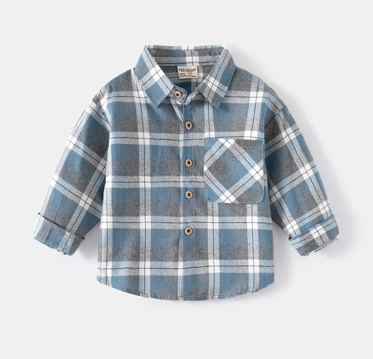 Новая детская клетчатая рубашка с длинными рукавами, удобная хлопковая рубашка с весенним воротником, красивая рубашка для мальчиков в Корейском стиле