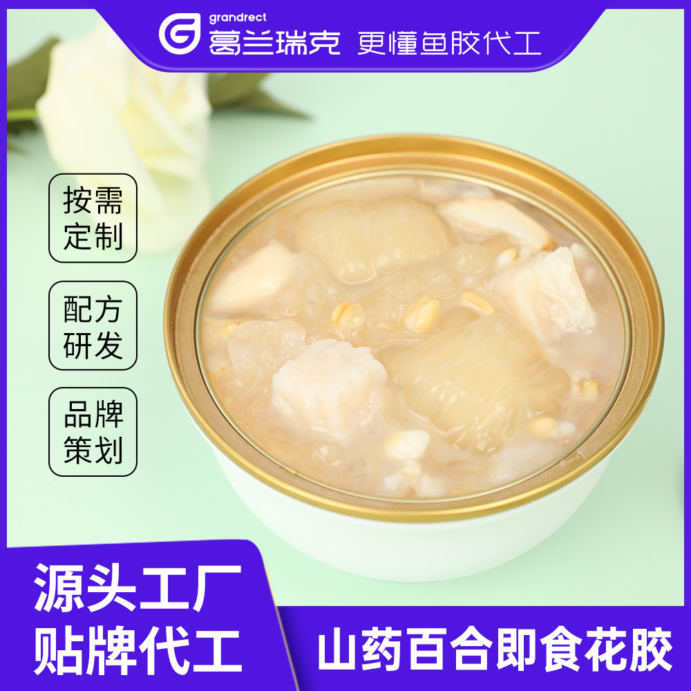Каша из пории кокосовой и цветков лилии, готовый к употреблению продукт, сочетающий лекарственные и пищевые ингредиенты, включая миндаль, ямс, рыбий желатин, белую фасоль и суп из семян лотоса.
