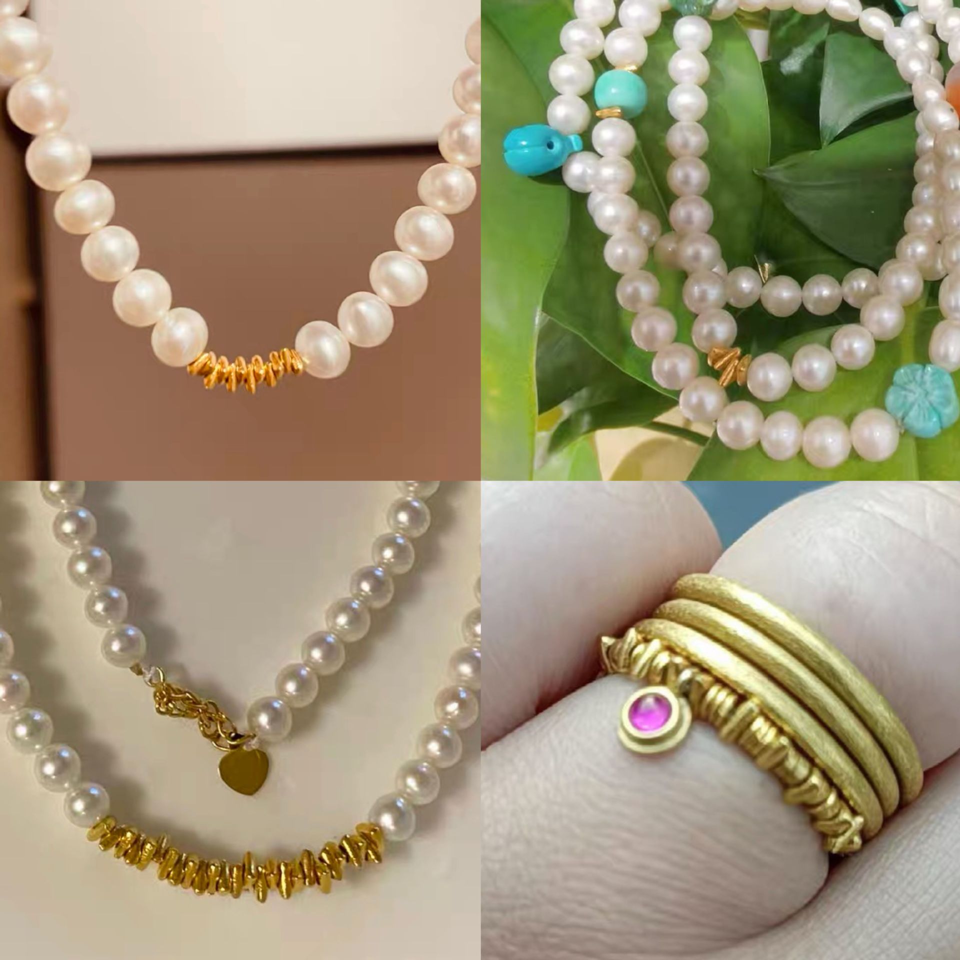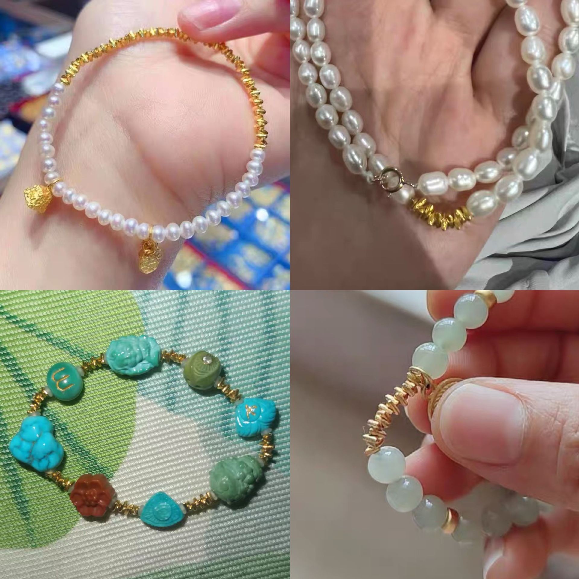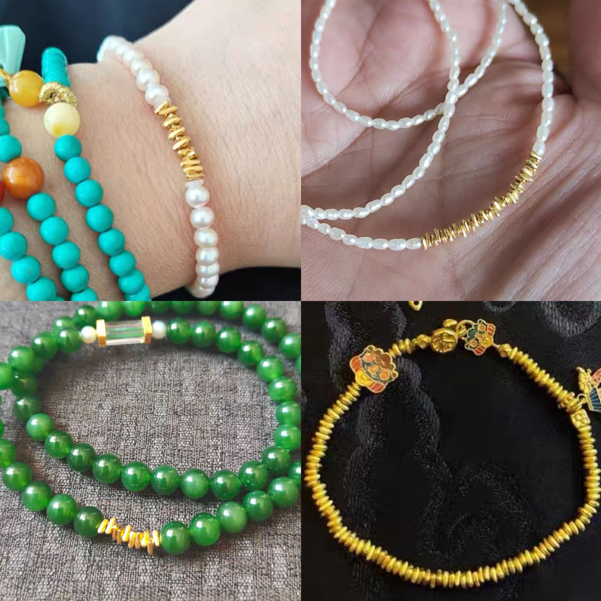18-каратное золото древний метод треугольник сломанный Золотой старый Золотой шарик прокладка diy' плетеный Канат жемчужный браслет ожерелье из бисера аксессуары