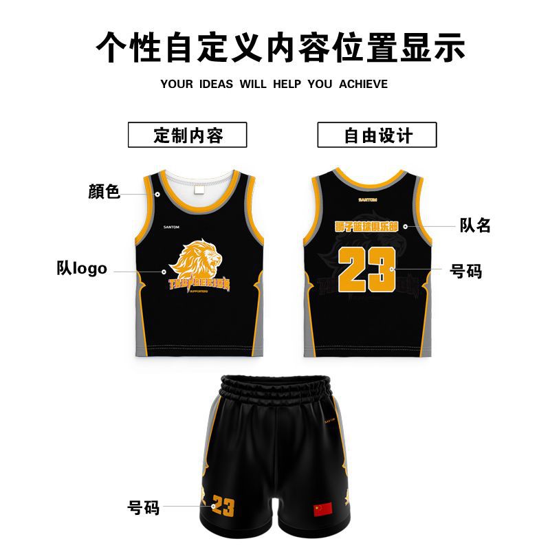 Баскетбольная одежда Детский индивидуальный костюм Тренировочный лагерь Клубные тренировки Командная одежда для соревнований Детский трикотаж Бесплатный водный принт