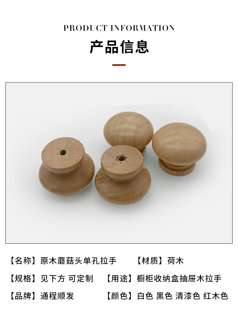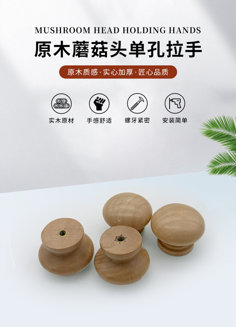 Оптовая продажа с фабрики: ручка для ящика из натурального дерева в форме гриба, одинарная, круглая, для шкафов и комодов