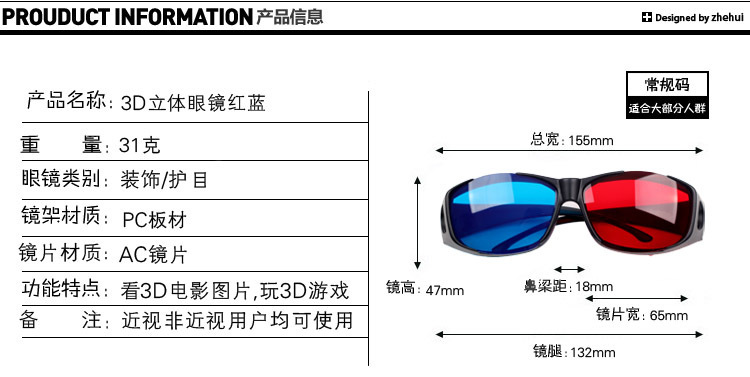 3D очки большие красные и синие стерео очки ТВ компьютерный кинотеатр