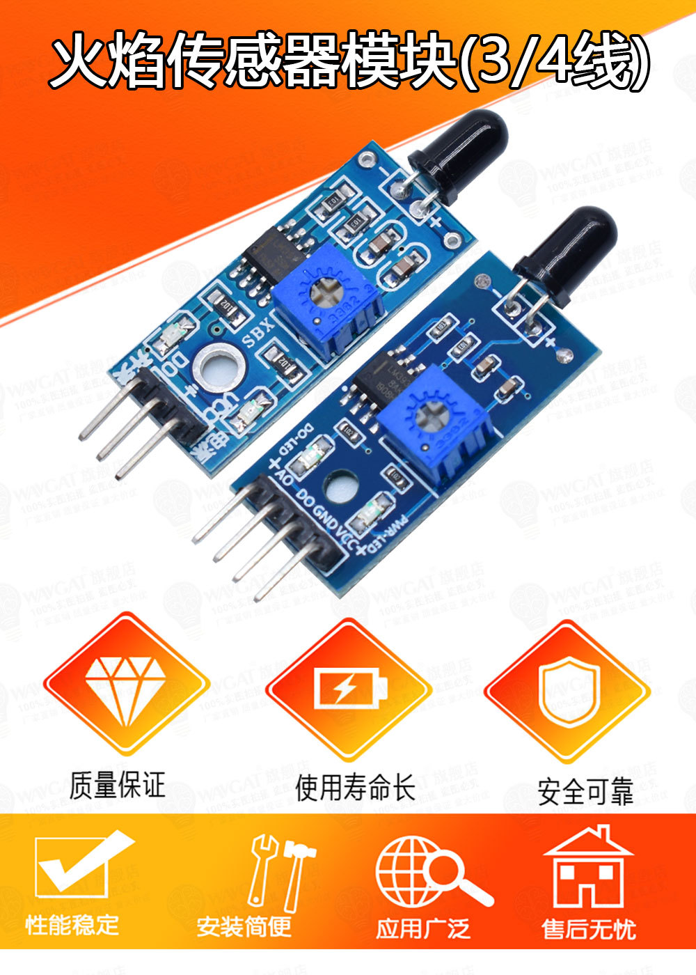 Модуль датчика пламени Модуль обнаружения источника огня Инфракрасный приемный модуль (система 3/4 проводов)