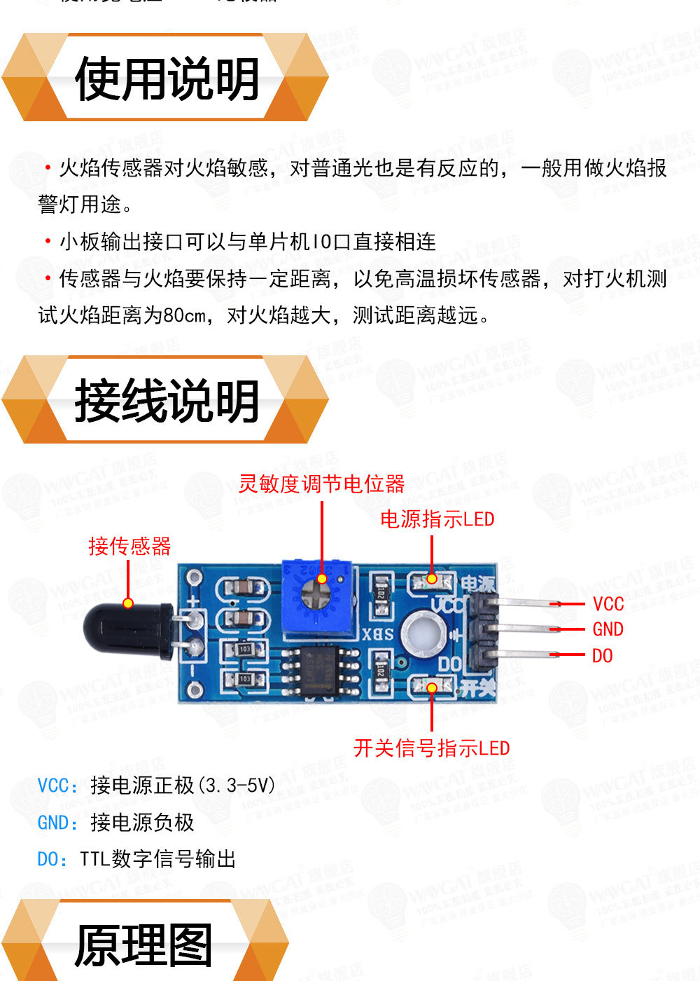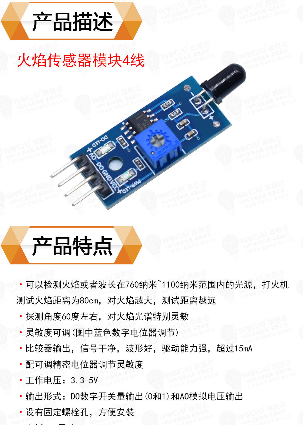 Модуль датчика пламени 3 провода; Модуль датчика пламени 4-провод