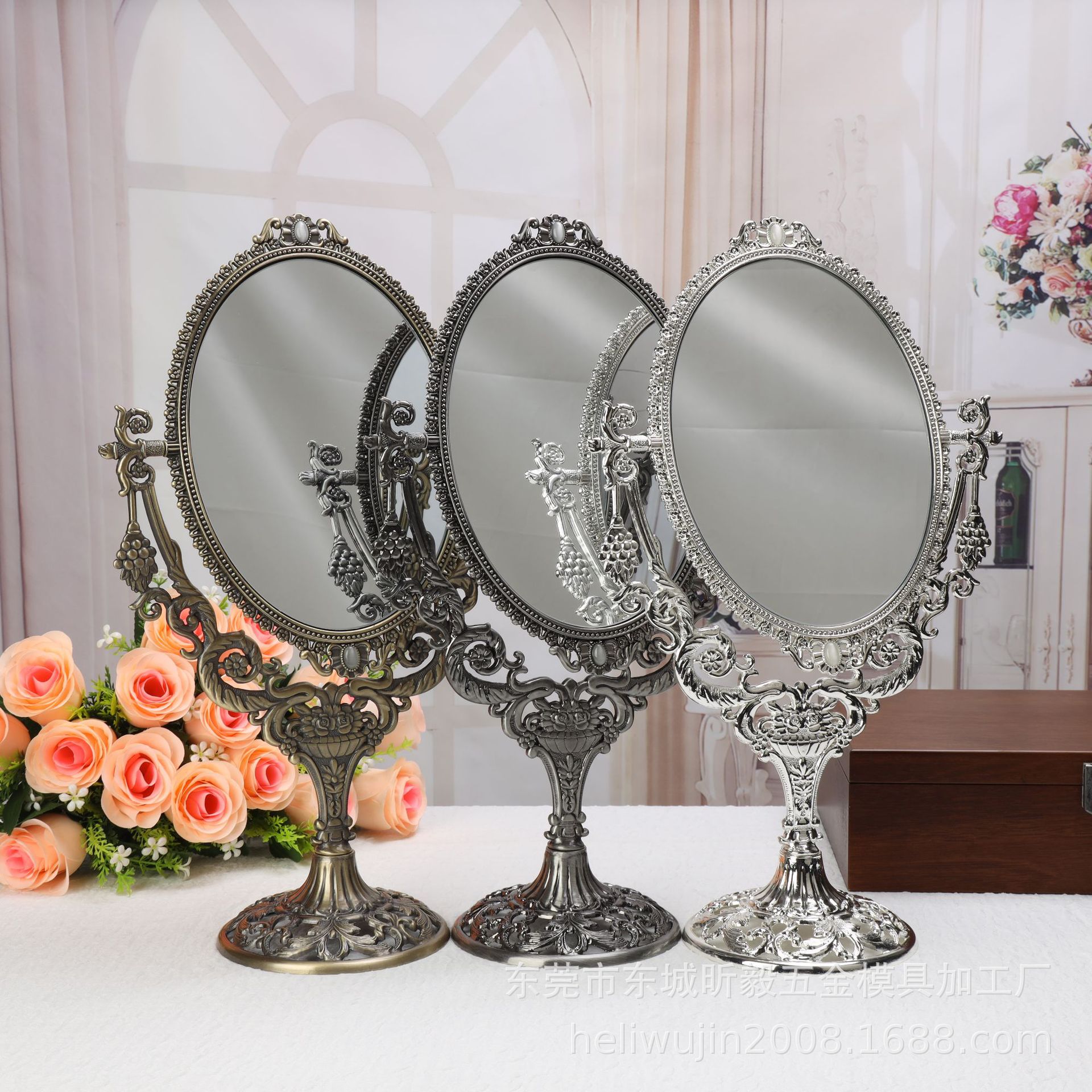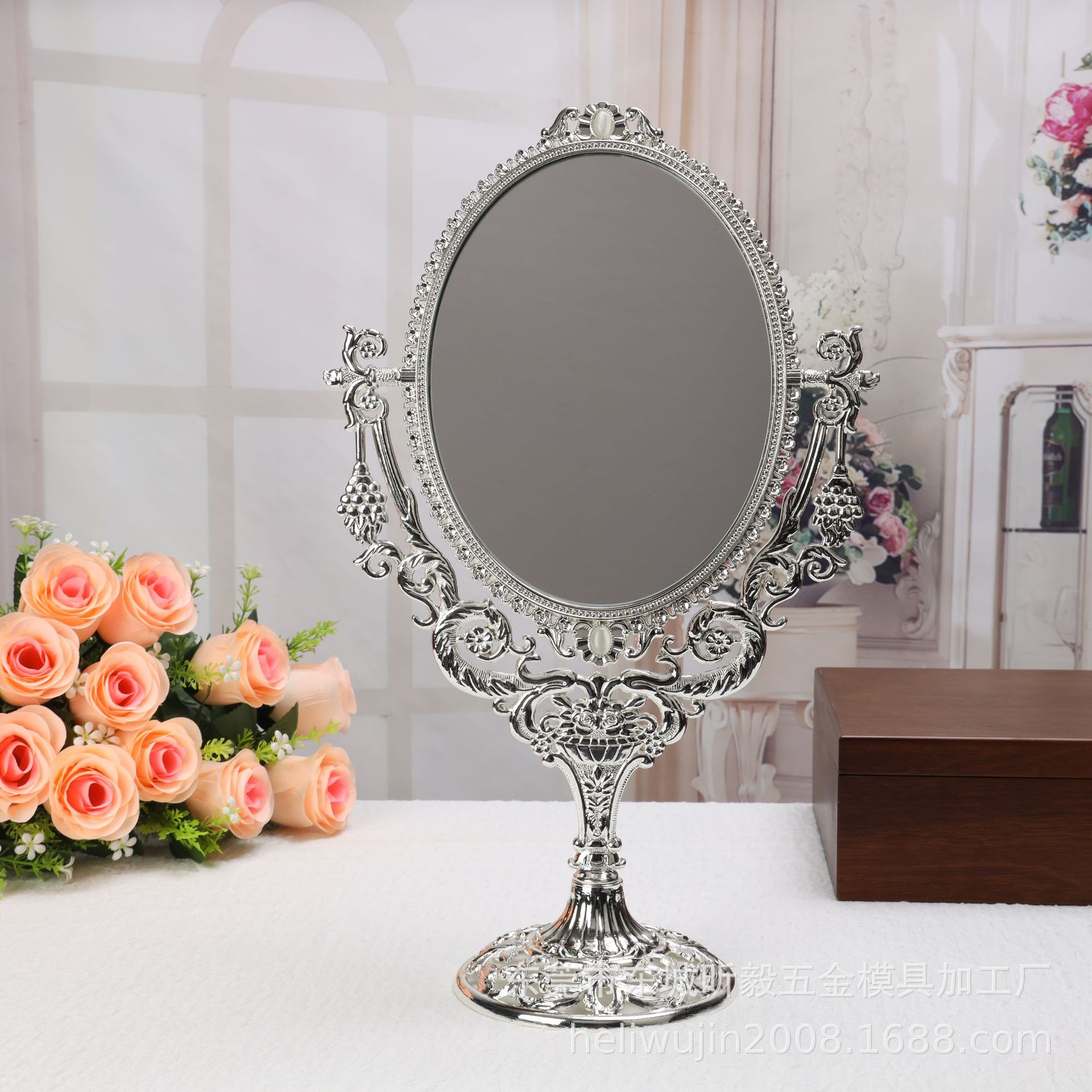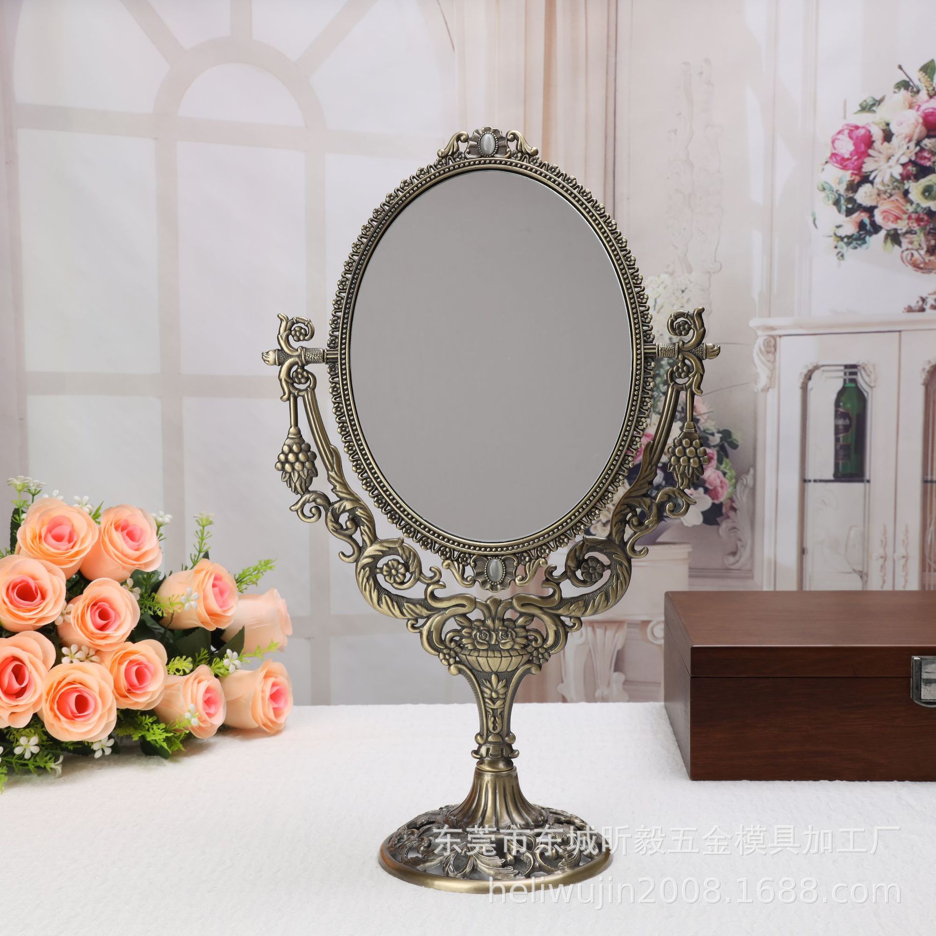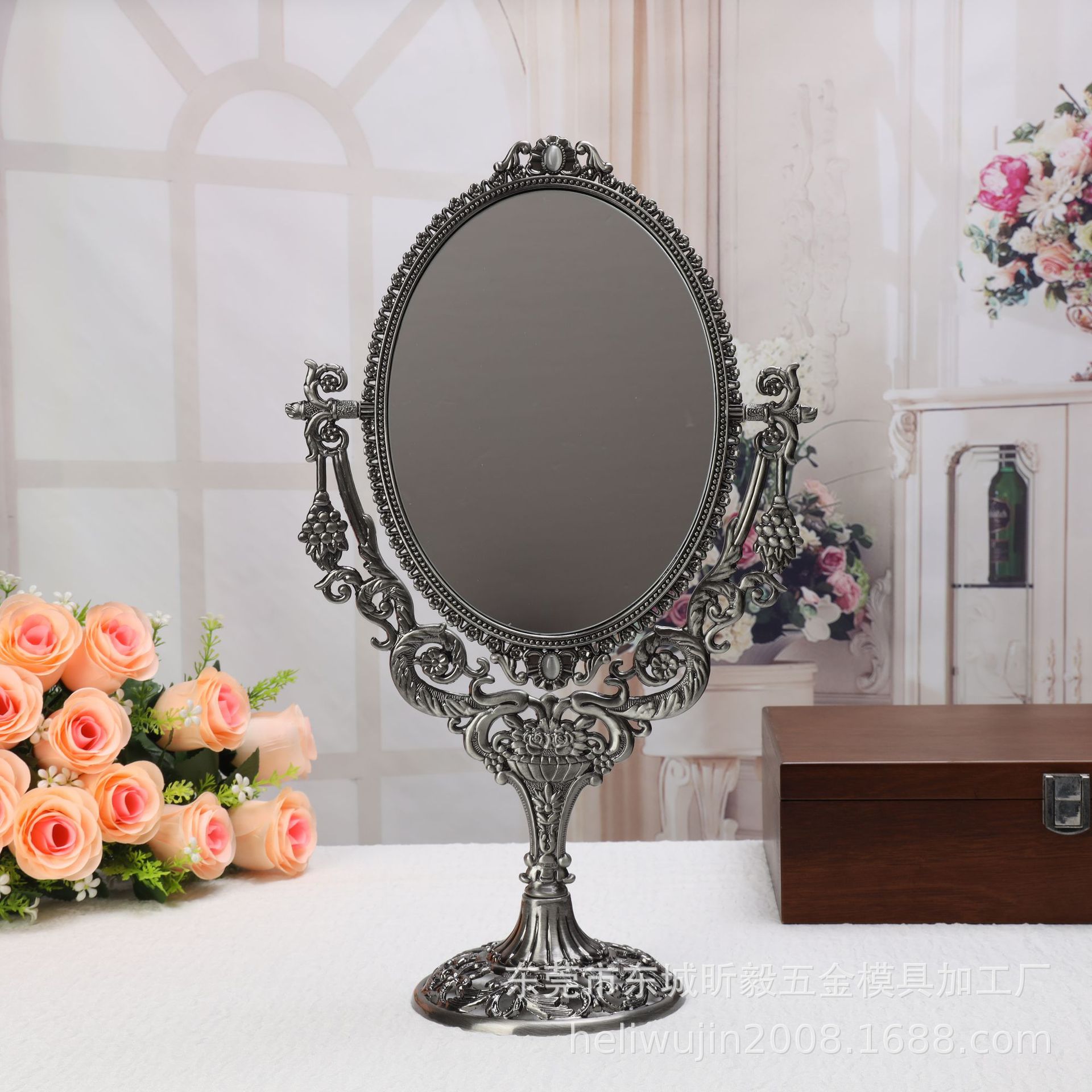 Металлическое настольное зеркало в стиле ретро, зеркало для туалетного столика принцессы, модное Европейское настольное зеркало