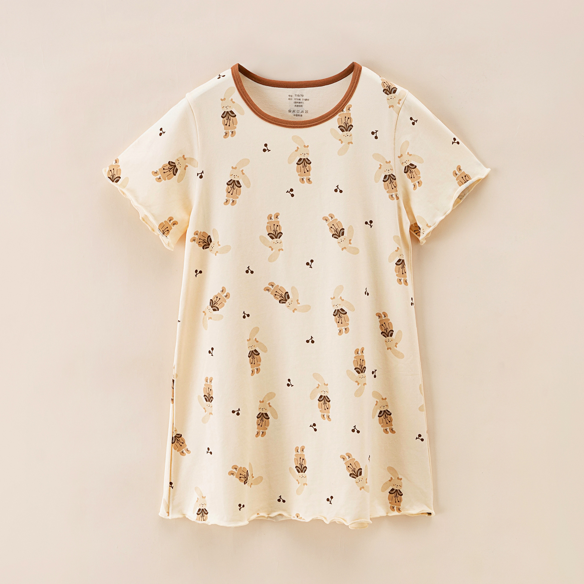 Летняя тонкая ночная рубашка, категория А, платье для девочки из чистого хлопка, детская ночная рубашка с короткими рукавами для детей среднего и большого размера, оптовая продажа