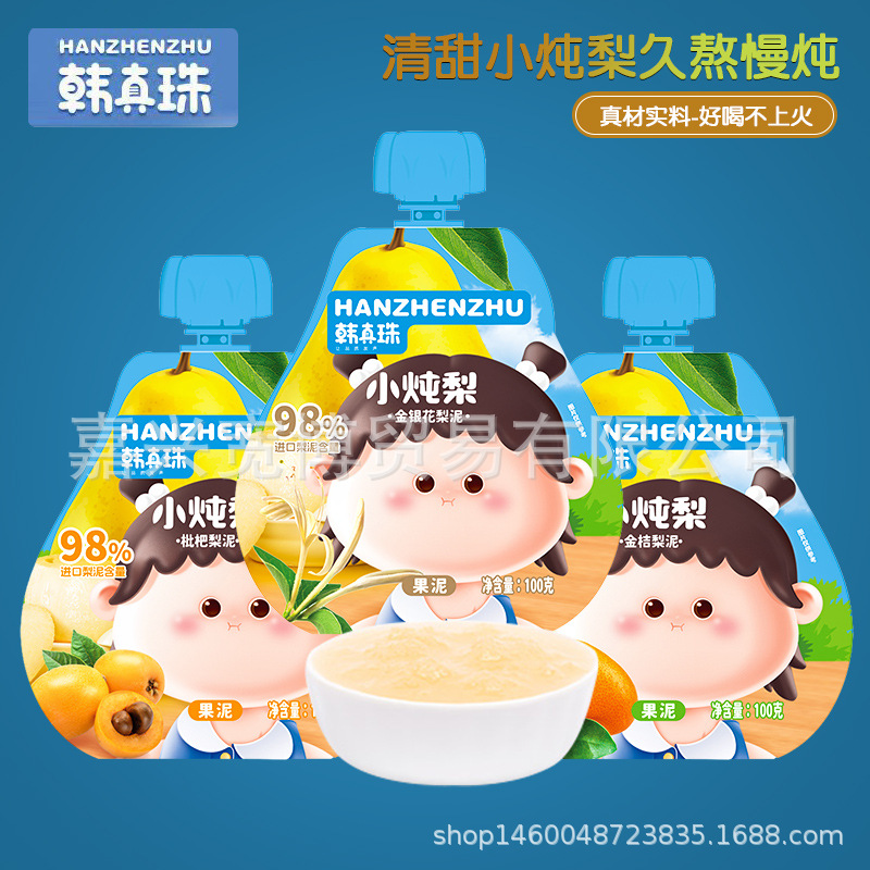 Новинки 26 марта: Маленькое грушевое пюре Han Zhenzhu (90 г/упаковка) — детское пюре из мушмулы и кумквата.