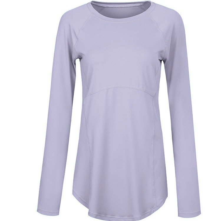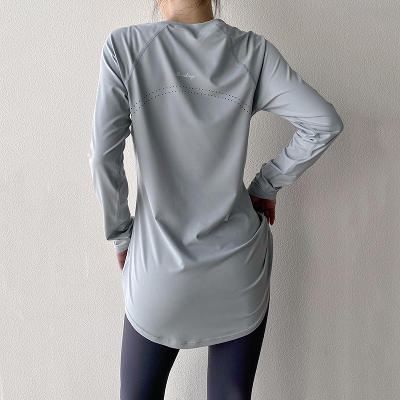 Весна и лето длинная крытая бедра тонкая спина красивая дышащая одежда для йоги длинные рукава бег фитнес-футболка женская