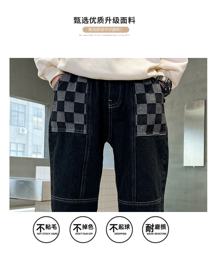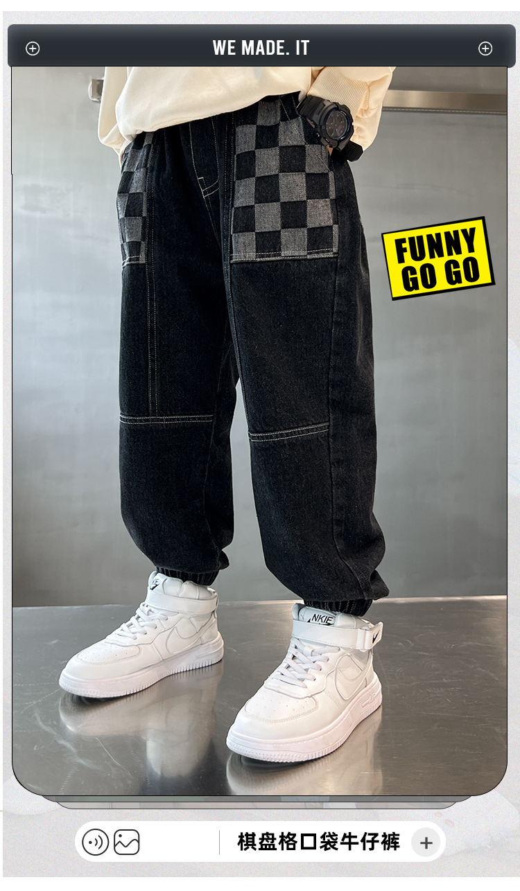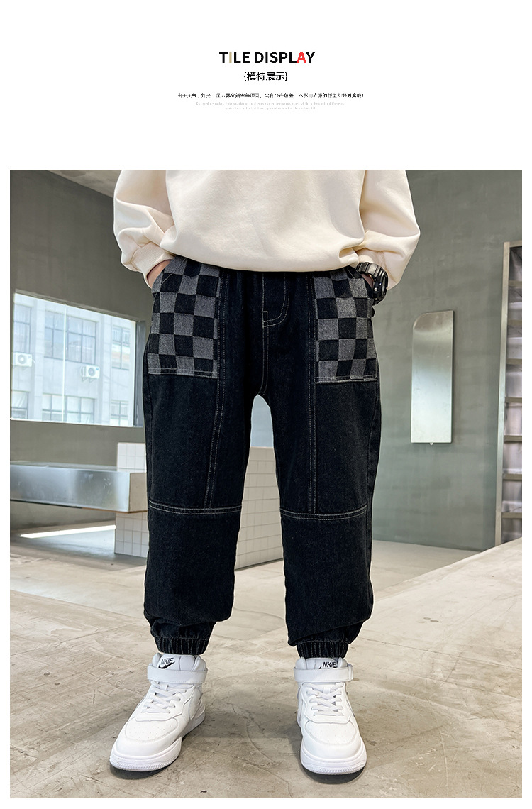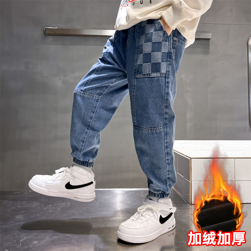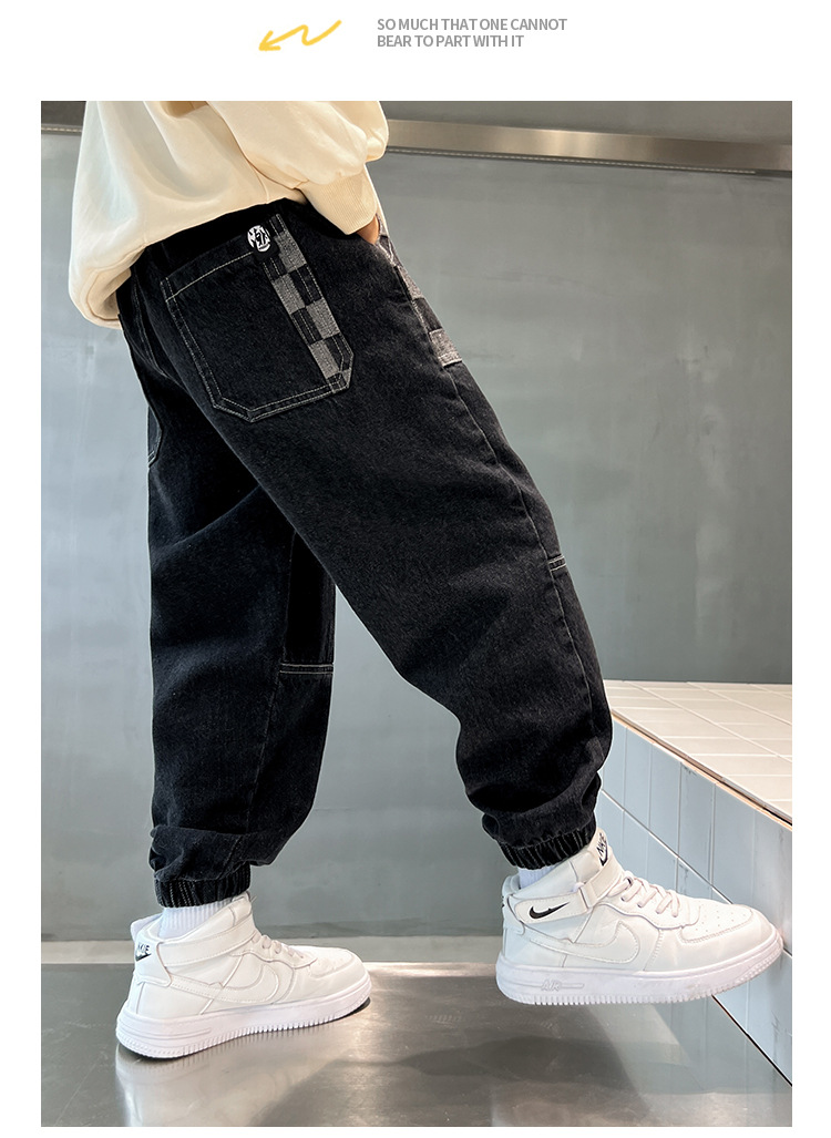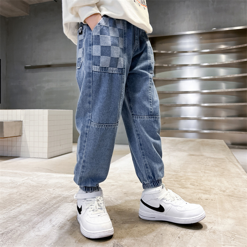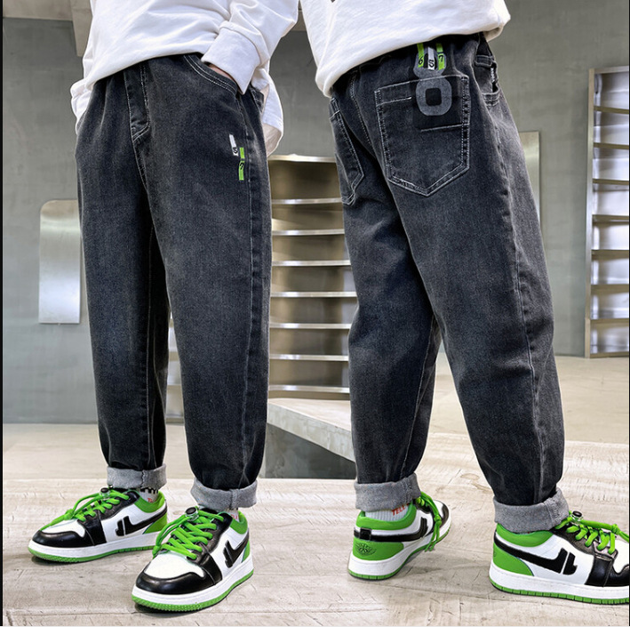 Джинсы для мальчиков Весна и осень 2023 новые жареные уличные брюки детские свободные пучки рот повседневные брюки прилив