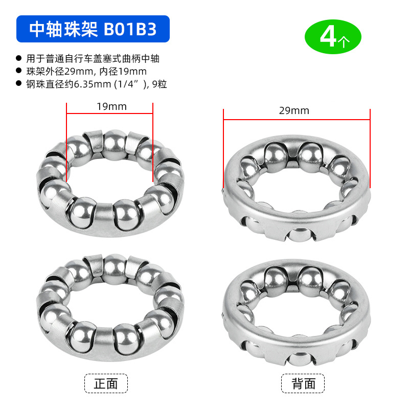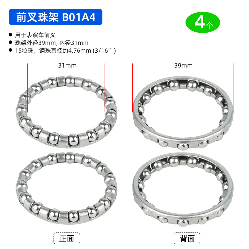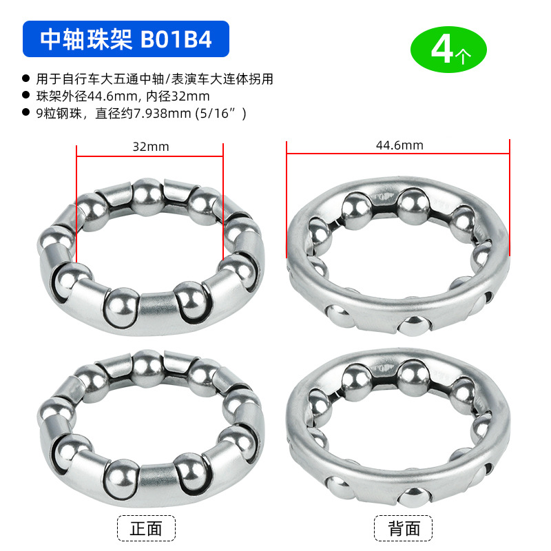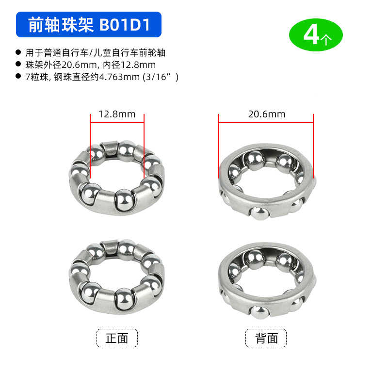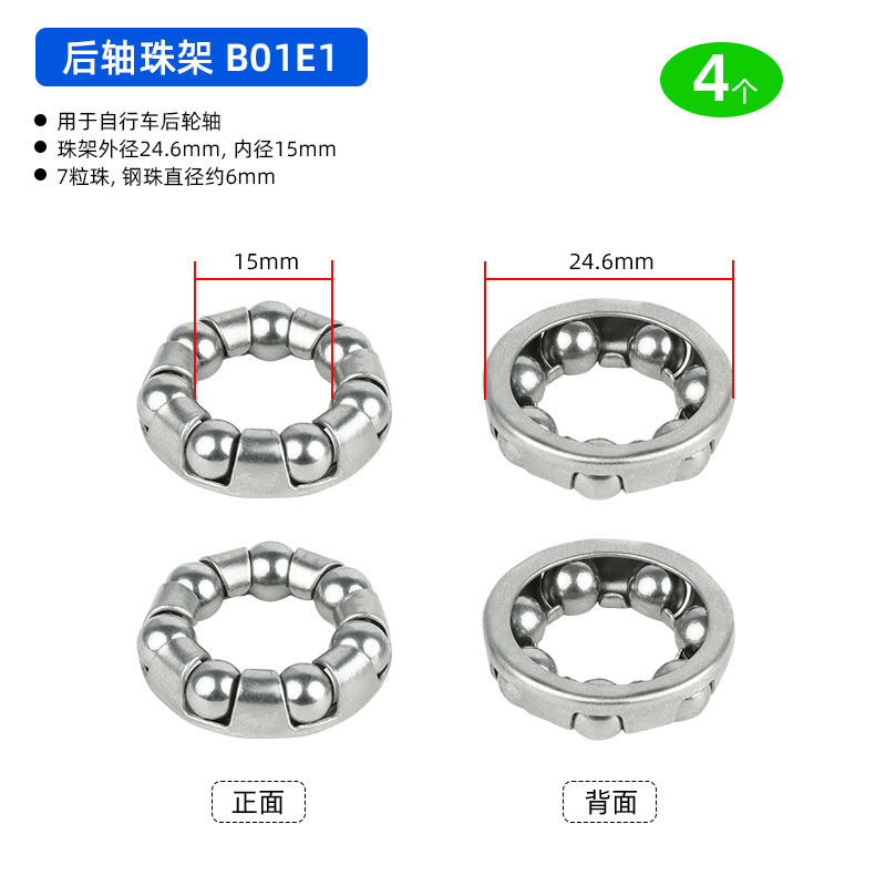 B01C1 Ножная педаль D18.8 мм, 7-шариковый ролик, 4 штуки, примерно 12 грамм; B01D1 Подшипник переднего моста, D20.6 мм, 7 шариков, 4 штуки, приблизительно 19,2 грамма; BG01E1 задний мост использует шарики D24.6 мм, 7 штук, 4 единицы, вес около 32,4 грамма.; BG01E2 задняя ось использует шарики D24.6 мм, 7 штук, 4 единицы, вес около 38,4 грамма.; B01A1 передняя вилка D37.2 мм, 16 шариков, 4 штуки, вес около 26.8 грамм; Передняя вилка модели B01A2 оснащена 20 шариками диаметром 40 мм, 4 штуки, вес около 30 грамм.; Передняя вилка B01A3 с 22 бусинами диаметром 40 мм, 4 штуки, около 33 грамм.; Передняя вилка BG01A4 использует 15 шариков диаметром 39 мм, 4 штуки, около 33 грамм.; BG01B1 каретка D: 30,5 мм, 9 шариков, 4 штуки, около 24,5 грамм; В нижнем кронштейне BG01B2 используются 7 шариков диаметром 38 мм, 4 штуки, около 106 грамм.; В нижнем кронштейне BG01B3 используются 9 бусин диаметром 29 мм, 4 штуки, около 48 грамм.; В нижнем кронштейне BG01B4 используются 9 шариков диаметром 44,6 мм, 4 штуки, около 75 грамм.
