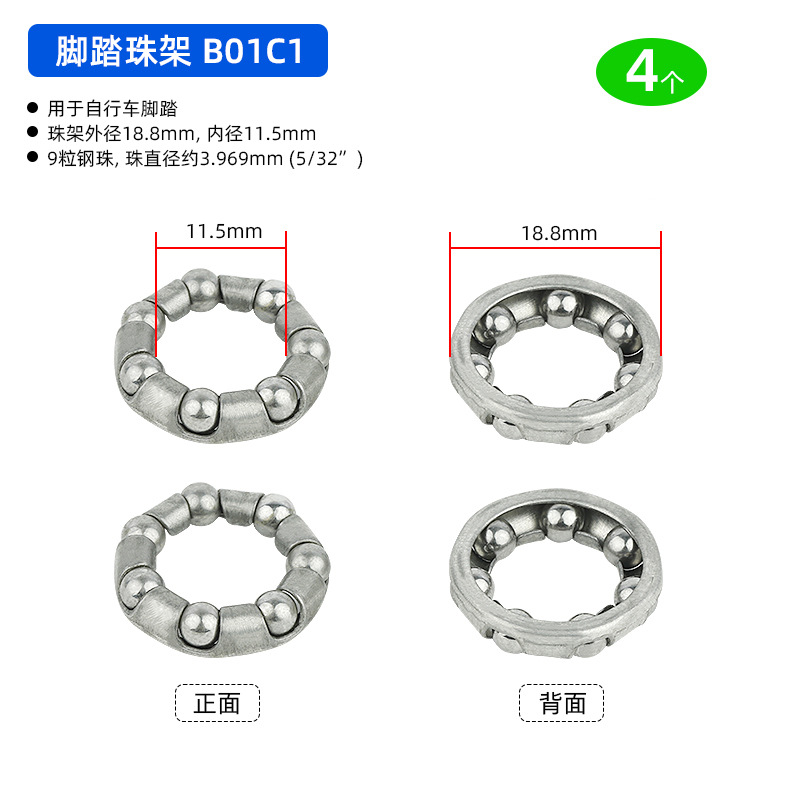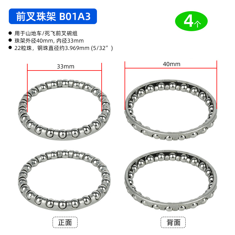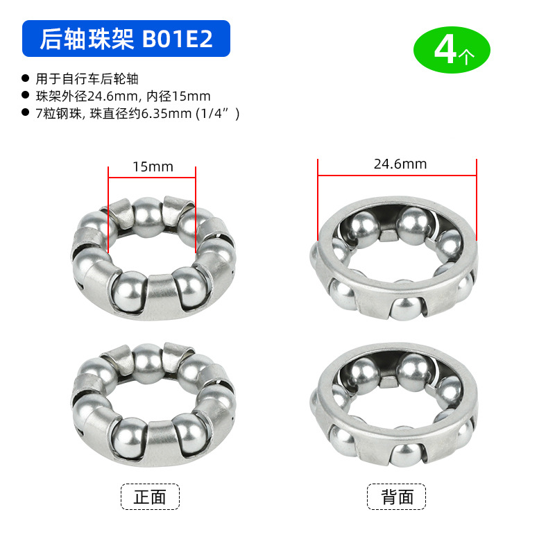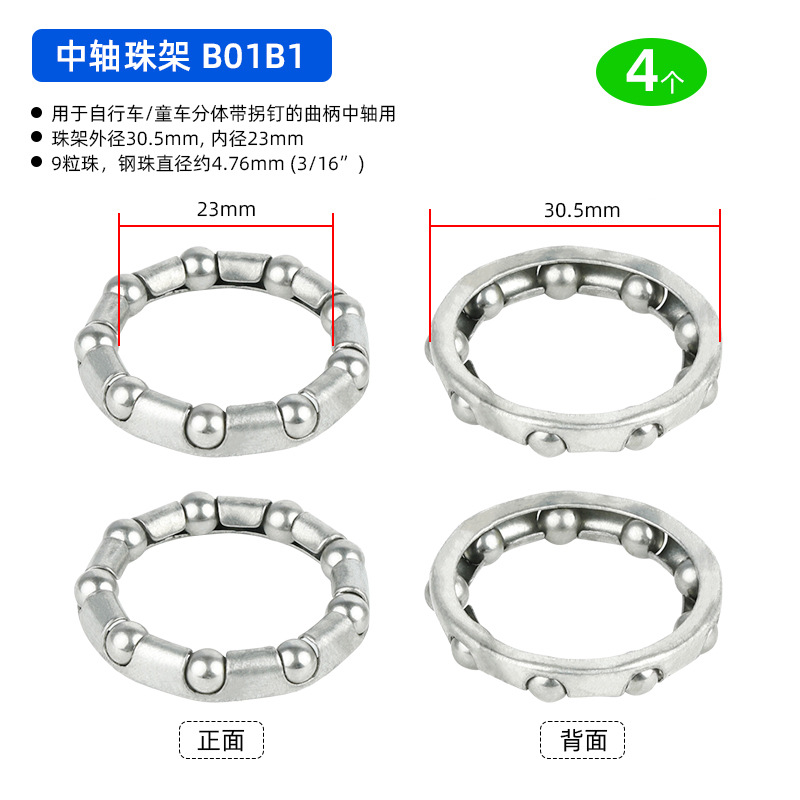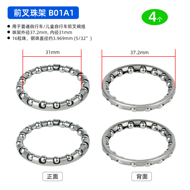 B01C1 Ножная педаль D18.8 мм, 7-шариковый ролик, 4 штуки, примерно 12 грамм; B01D1 Подшипник переднего моста, D20.6 мм, 7 шариков, 4 штуки, приблизительно 19,2 грамма; BG01E1 задний мост использует шарики D24.6 мм, 7 штук, 4 единицы, вес около 32,4 грамма.; BG01E2 задняя ось использует шарики D24.6 мм, 7 штук, 4 единицы, вес около 38,4 грамма.; B01A1 передняя вилка D37.2 мм, 16 шариков, 4 штуки, вес около 26.8 грамм; Передняя вилка модели B01A2 оснащена 20 шариками диаметром 40 мм, 4 штуки, вес около 30 грамм.; Передняя вилка B01A3 с 22 бусинами диаметром 40 мм, 4 штуки, около 33 грамм.; Передняя вилка BG01A4 использует 15 шариков диаметром 39 мм, 4 штуки, около 33 грамм.; BG01B1 каретка D: 30,5 мм, 9 шариков, 4 штуки, около 24,5 грамм; В нижнем кронштейне BG01B2 используются 7 шариков диаметром 38 мм, 4 штуки, около 106 грамм.; В нижнем кронштейне BG01B3 используются 9 бусин диаметром 29 мм, 4 штуки, около 48 грамм.; В нижнем кронштейне BG01B4 используются 9 шариков диаметром 44,6 мм, 4 штуки, около 75 грамм.