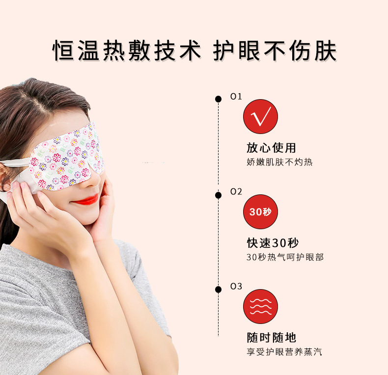 Горячая компрессионная паровая маска для глаз с индивидуальным дизайном OEM для снятия усталости глаз, одноразовая нагревательная маска для глаз OEM-производство.