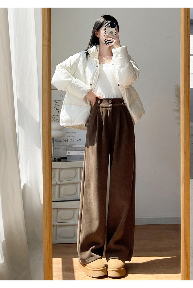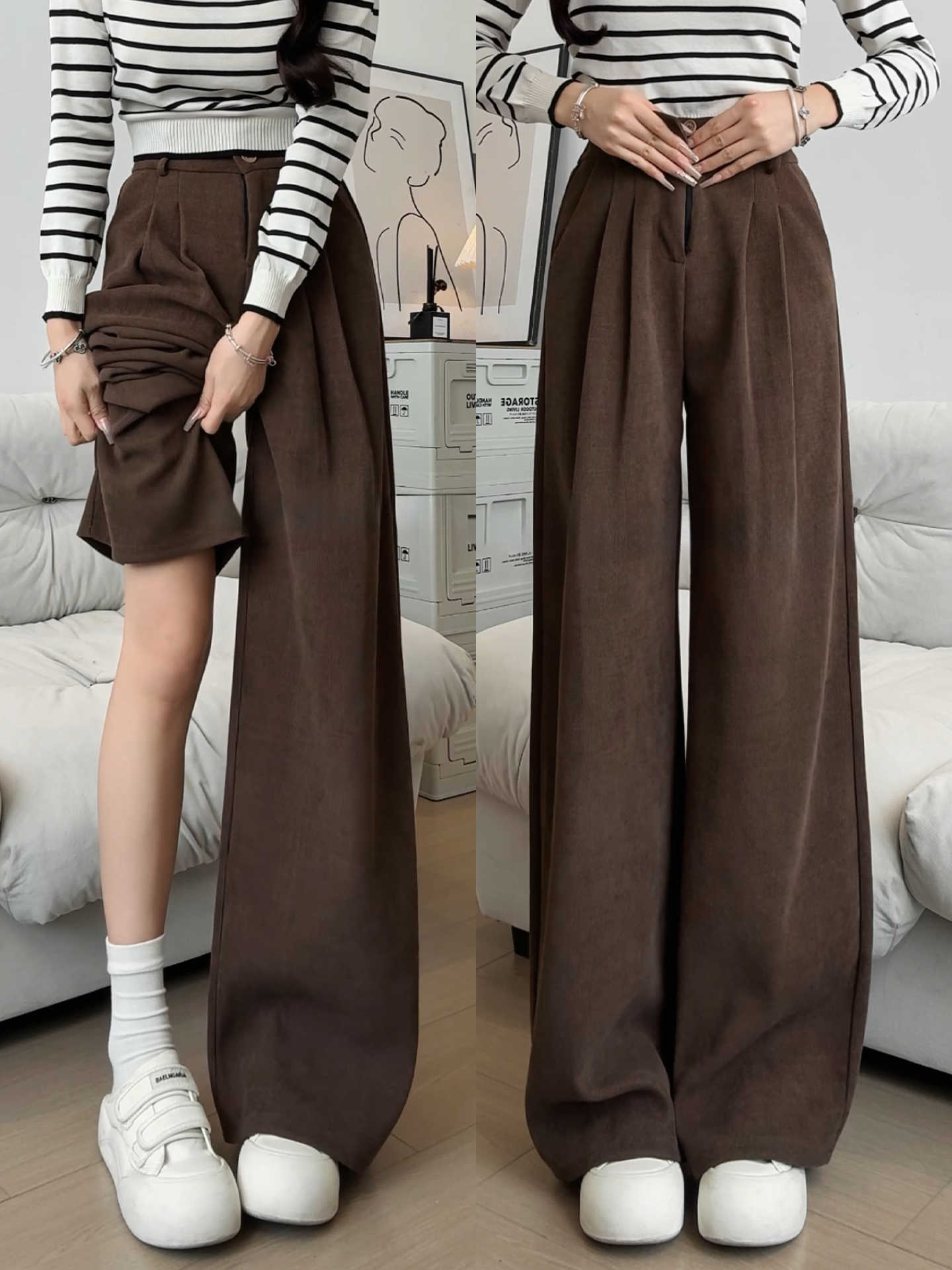 Коричневые вельветовые брюки-палаццо для женщин, новая модель осень-зима 2025, на флисовой подкладке, узкие прямые брюки-палаццо с драпировкой для миниатюрных фигур