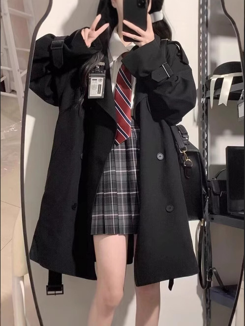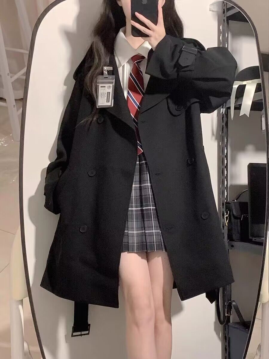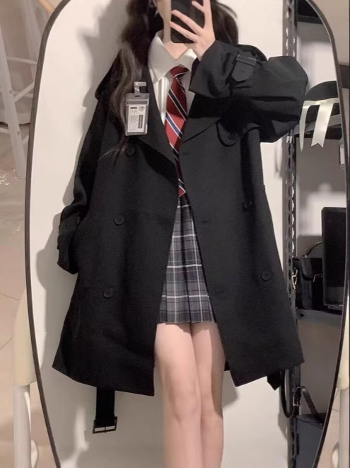 Черная ветровка, верхняя одежда, женская верхняя одежда средней длины, весна-осень 2021, новая свободная маленькая верхняя одежда в британском стиле в корейском стиле
