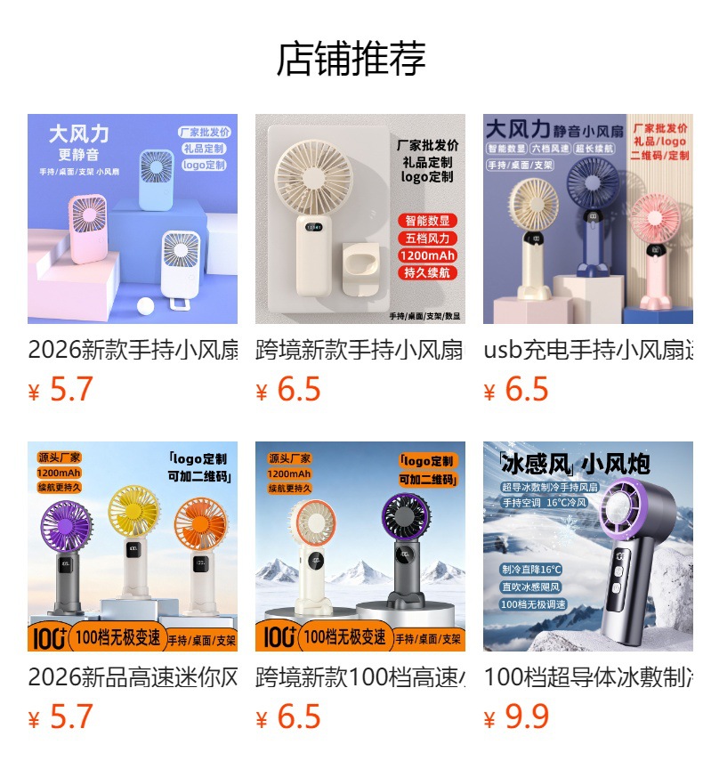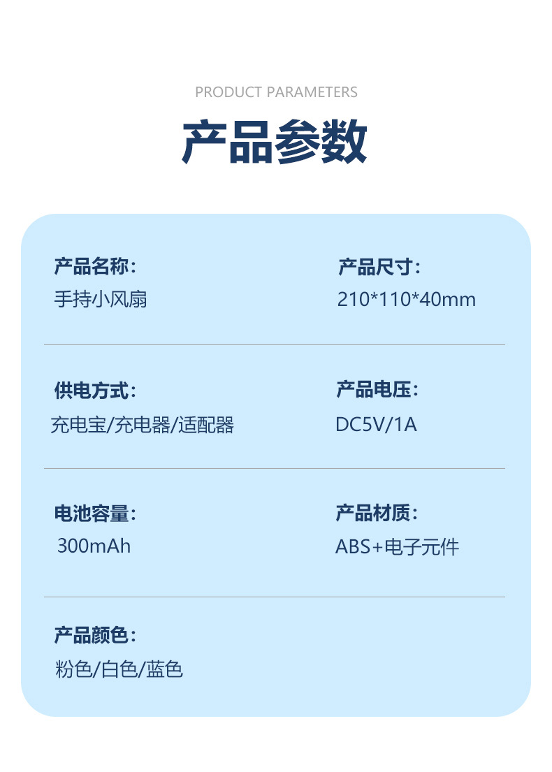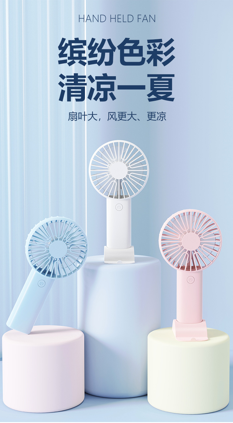 【产品名称】:手持迷你小风扇{底部带支架}三挡风速可调节