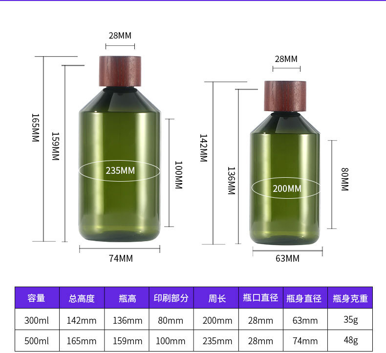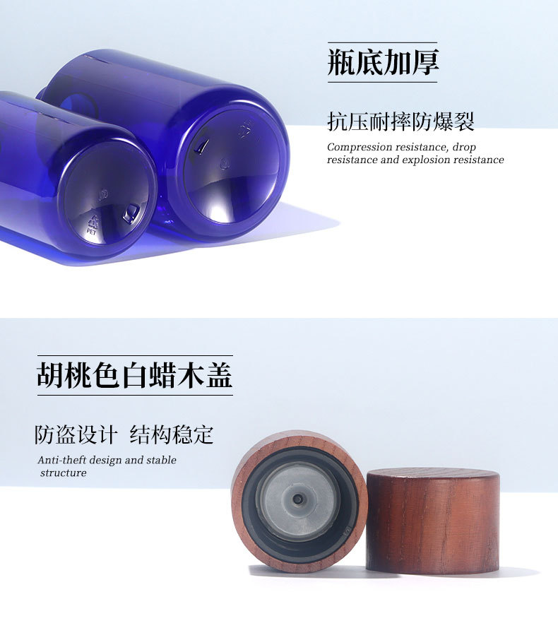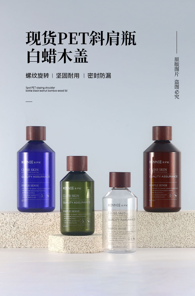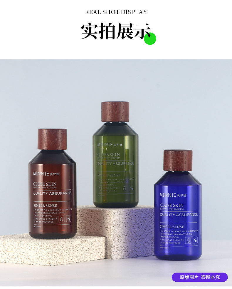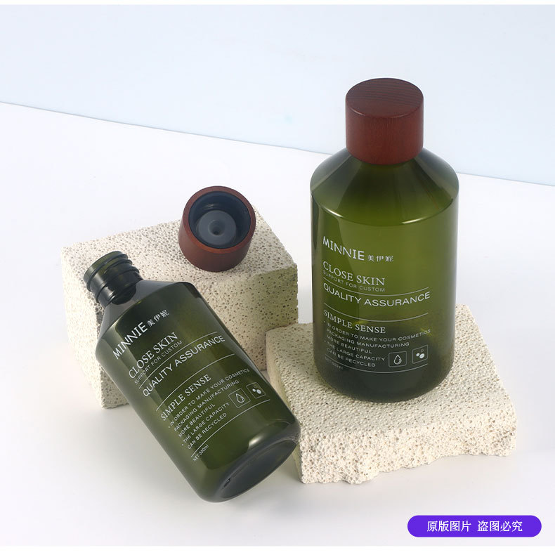 现货磨砂茶色300ml纯露瓶白蜡木纯露盖斜肩瓶透明500ml纯露瓶子