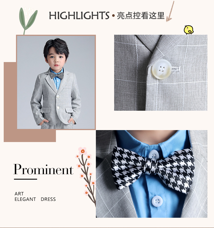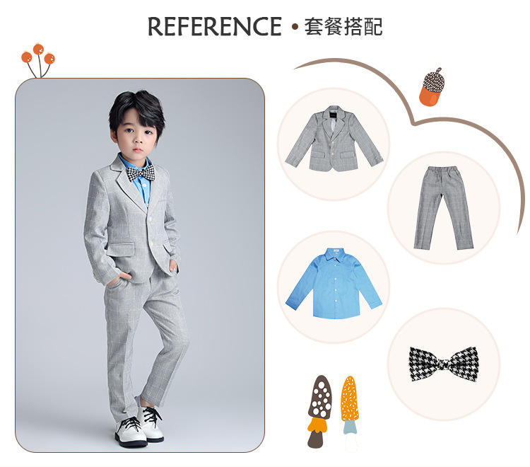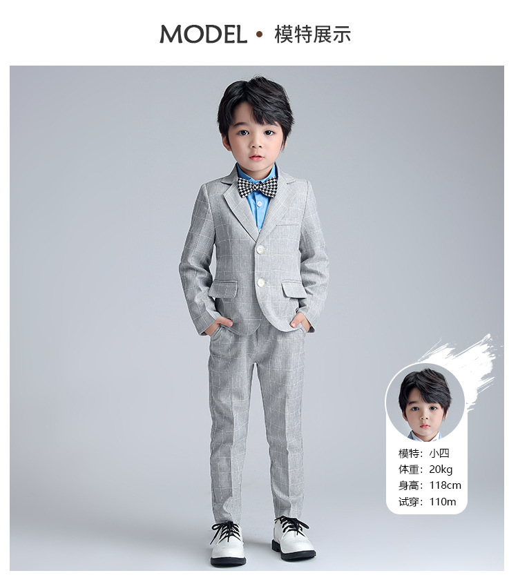 Детское платье Весна Новый британский клетчатый маленький костюм мальчик джентльмен фортепиано ведущий костюм поколения
