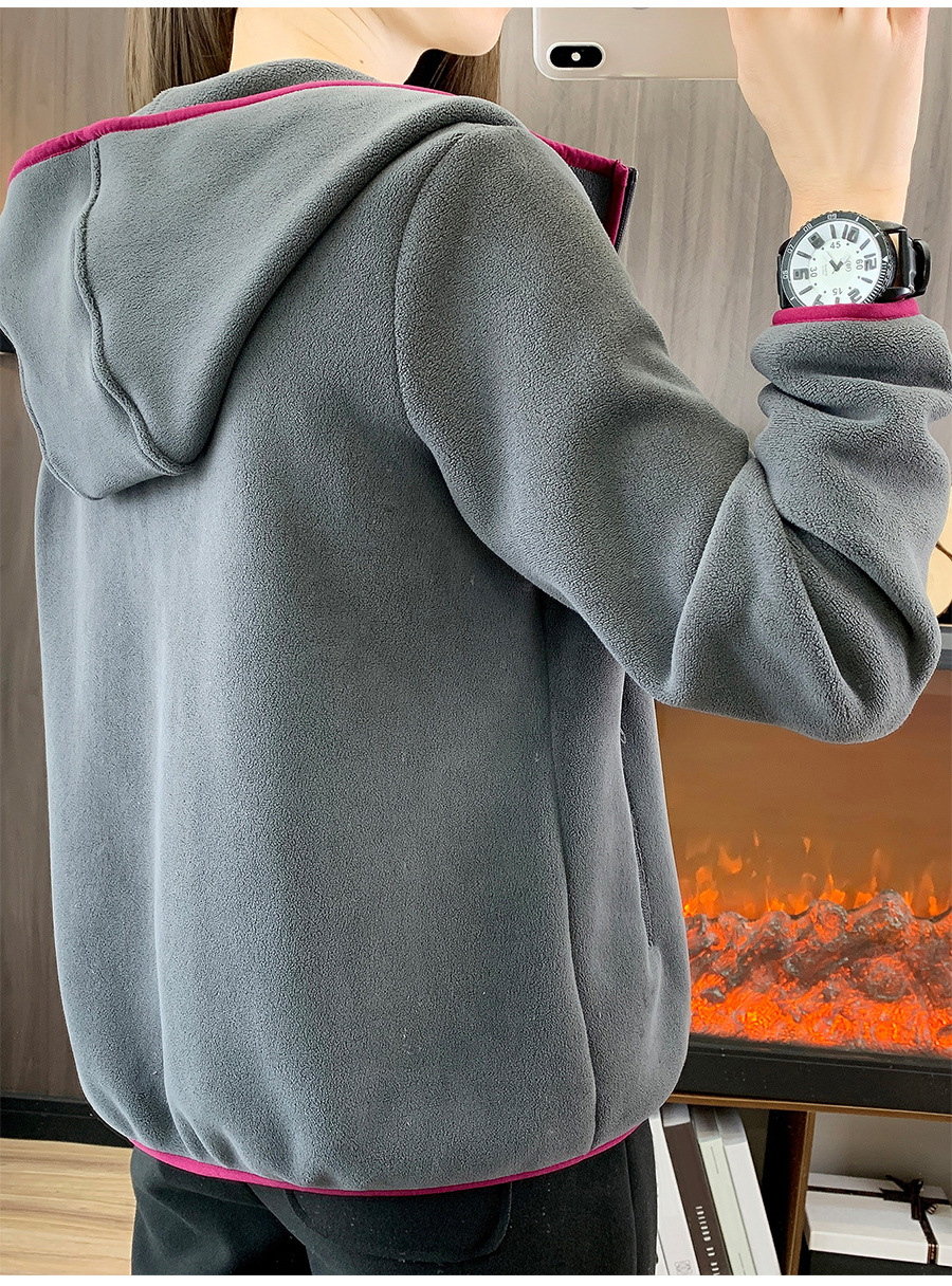 Популярная уличная осенне-зимняя флисовая куртка с цветными блоками для мужчин и женщин, кардиган на флисовой подкладке, двусторонний флис, теплый и утолщенный модный.