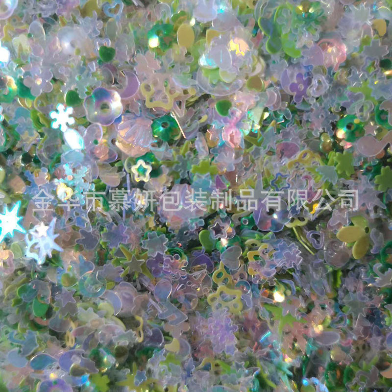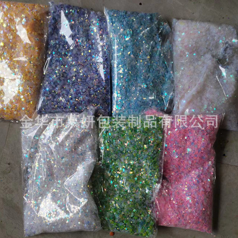 Смешанные цветные блестки; Голубые золотые блестки; Желтые золотые блестки; Фиолетовые золотые блестки; Зеленые золотые блестки; Розовые золотые блестки; Прозрачные золотые блестки