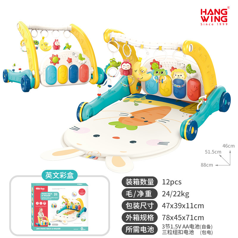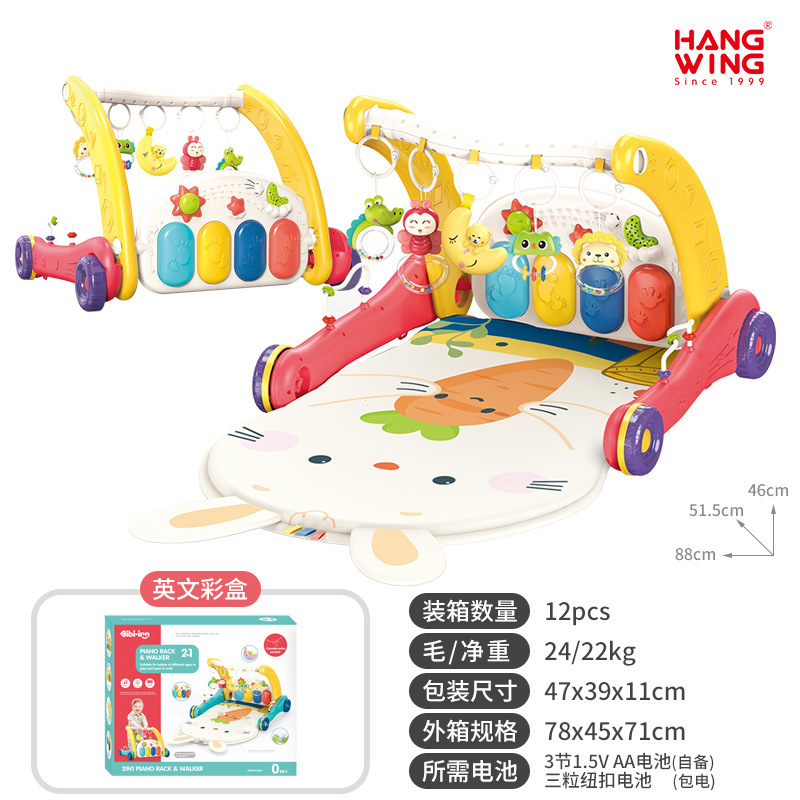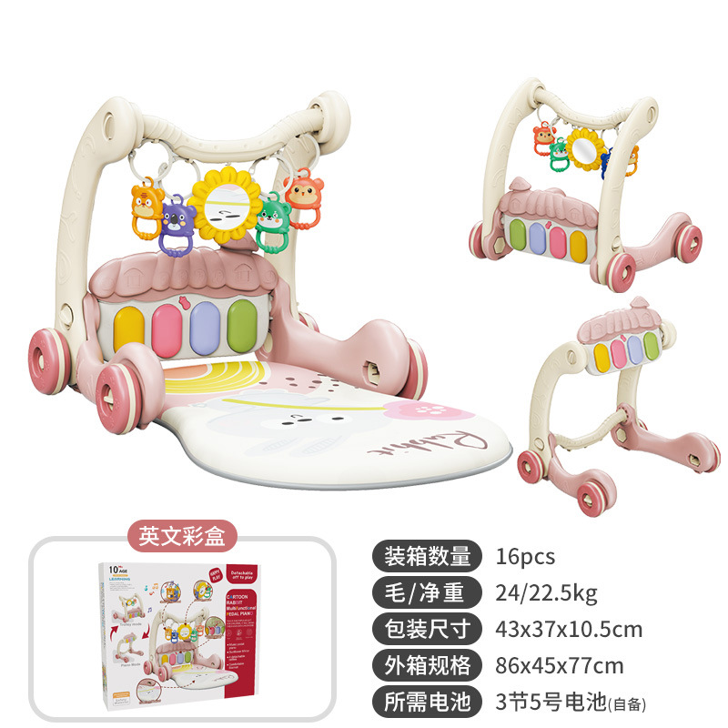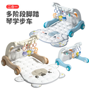Многофункциональный ходунок-каталка 2-в-1 для новорожденных с пианино, музыкальный развивающий коврик для ползания и фитнеса, хит продаж для международного рынка