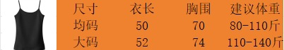 吊带黑白肤三色,均码 80-110斤,大码110-140斤能穿,十件一袋装,十件起批,厂家自产自销,价格实惠,跑量的,利润很低的,量大运费可优惠请联系客服!需要其他尺码请联系客服。