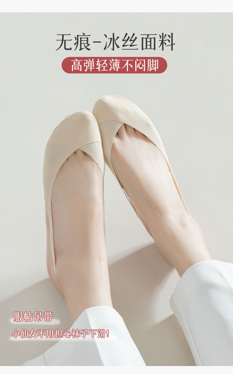 Ледяные шелковые носки-лодочки, женские туфли на каблуке, тонкие Нескользящие туфли на высоком каблуке, невидимые носки, носки на половину ладони
